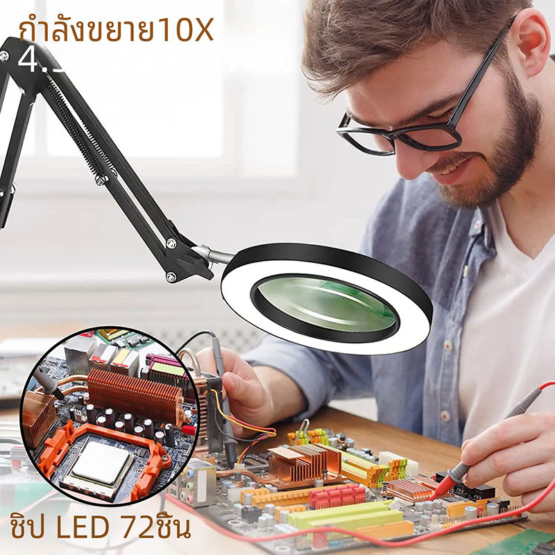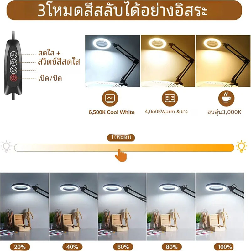 โคมไฟแว่นขยาย พับได้ แว่นขยายตั้งโต๊ะ แว่นขยาย โคมไฟแว่นขยายตั้ง โคมไฟแว่นขยายหนีบโต๊ะ โคมไฟแว่นขยายตั้งโต๊ะ LED3โหมด