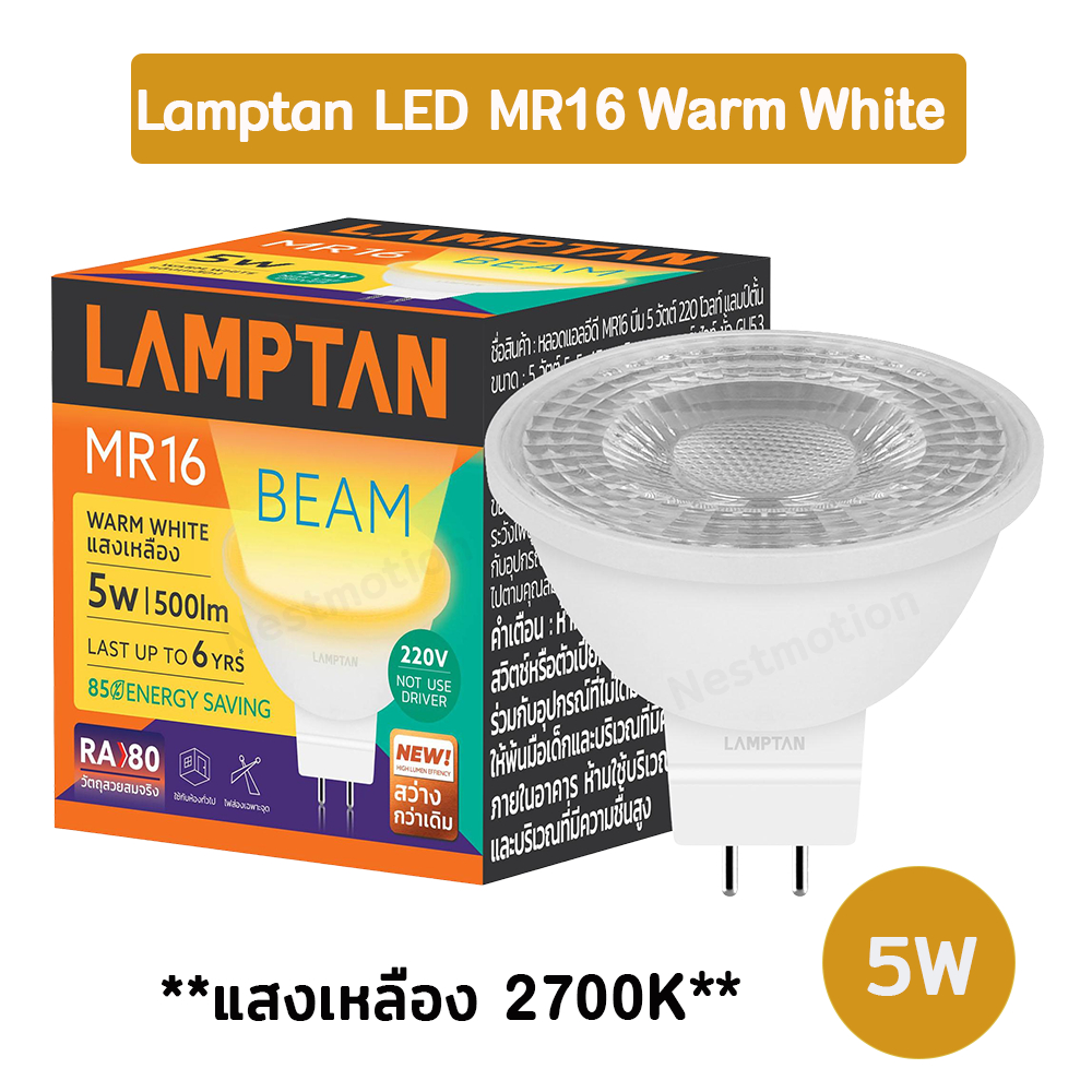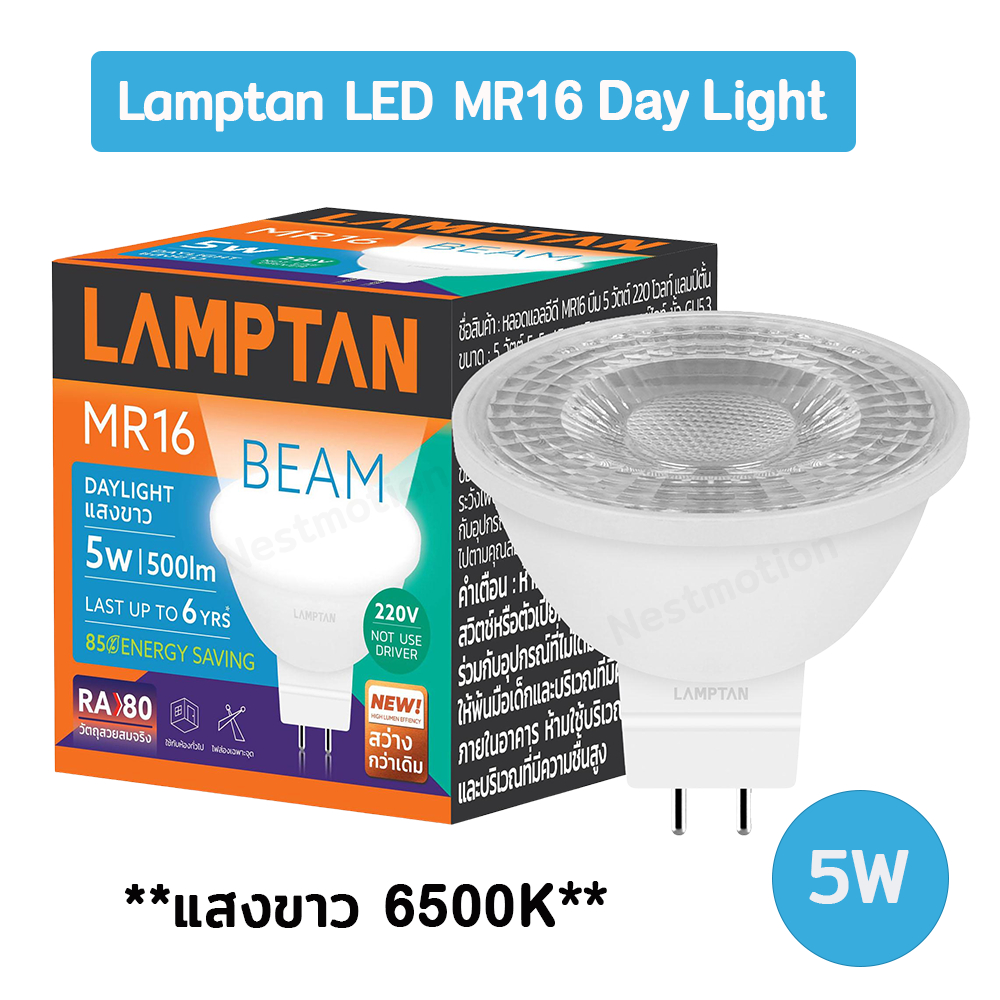 Lamptan / Liton หลอดLED MR16 BEAM 5W 220V ขั้ว GU5.3 แสงขาว แสงเหลือง 500 Lumen หลอดไฟส่องเฉพาะจุด ทดแทนหลอดฮาโลเจน