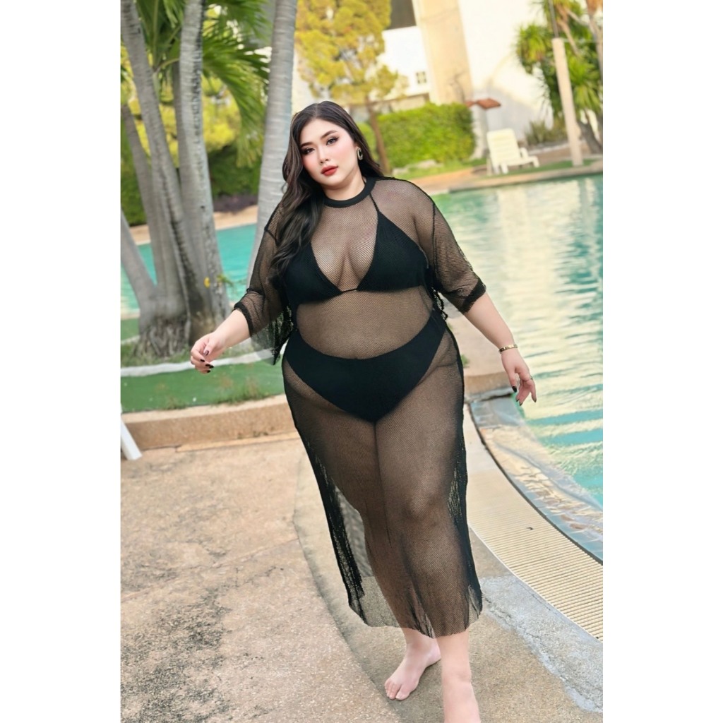 เดรสตาข่ายสุดเซ็กซี่ สวยปัง สวยแซ่บ ใครใส่ก็เลิศ ใส่เที่ยว ไปทะเล summer minidress พลัสไซส์ เสื้อผ้าสาวอวบอ้วน ไซส์ใหญ่