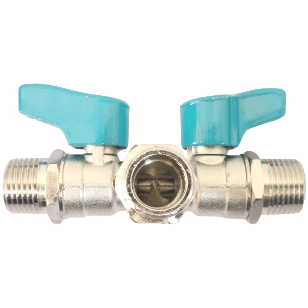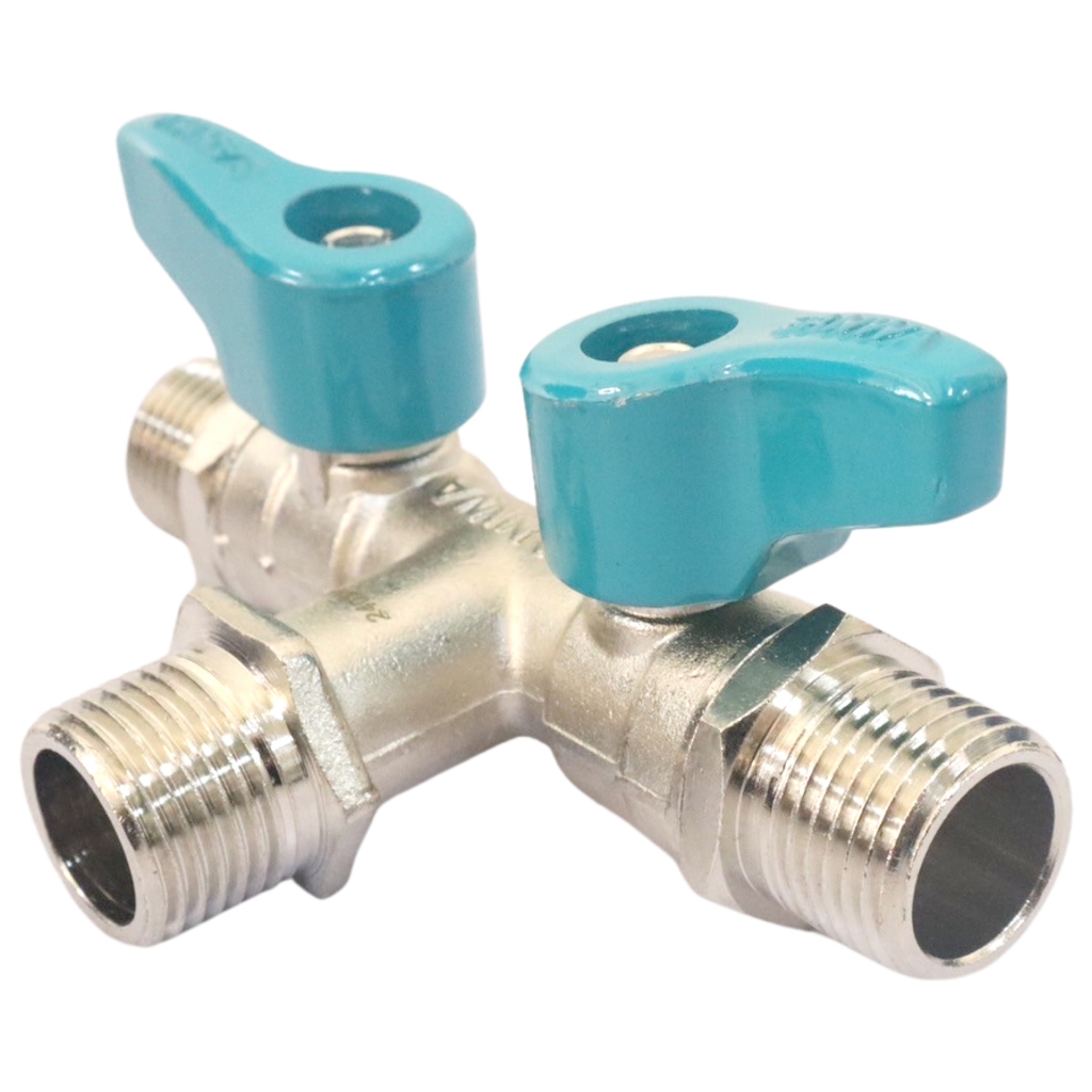 SANWA ซันว่า มินิบอลวาล์ว บอลวาวล์สามทาง ผผผ 2 วาล์ว ขนาด 1/2" (4หุน) เกลียวนอก 3 ด้าน BV15 3W2V