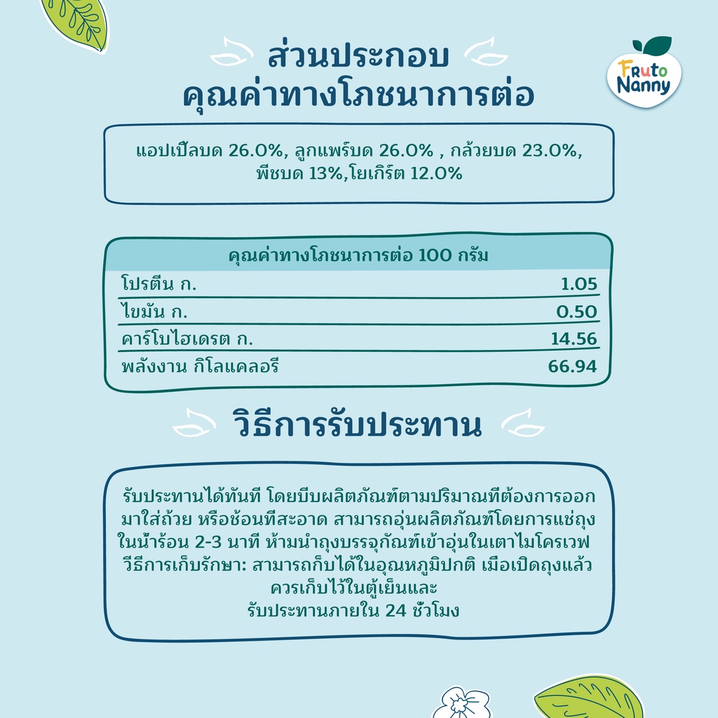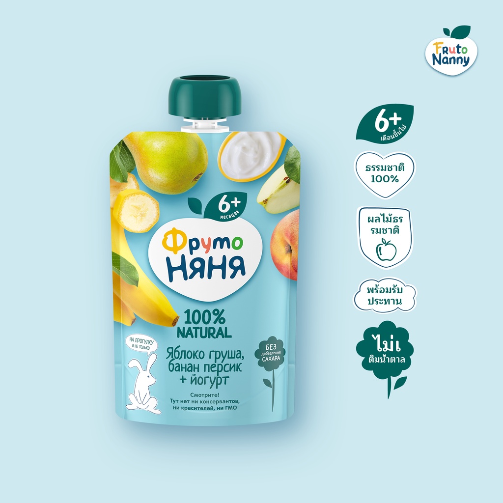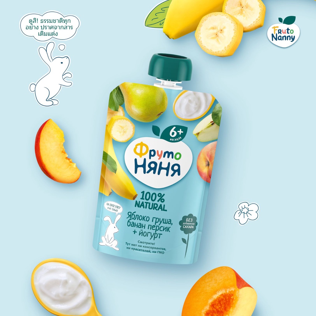 FrutoNanny Puree | เพียวเร่เด็ก 100% ธรรมชาติ แอปเปิ้ล พีช กล้วย ลูกแพร์ ไม่มีน้ำตาล