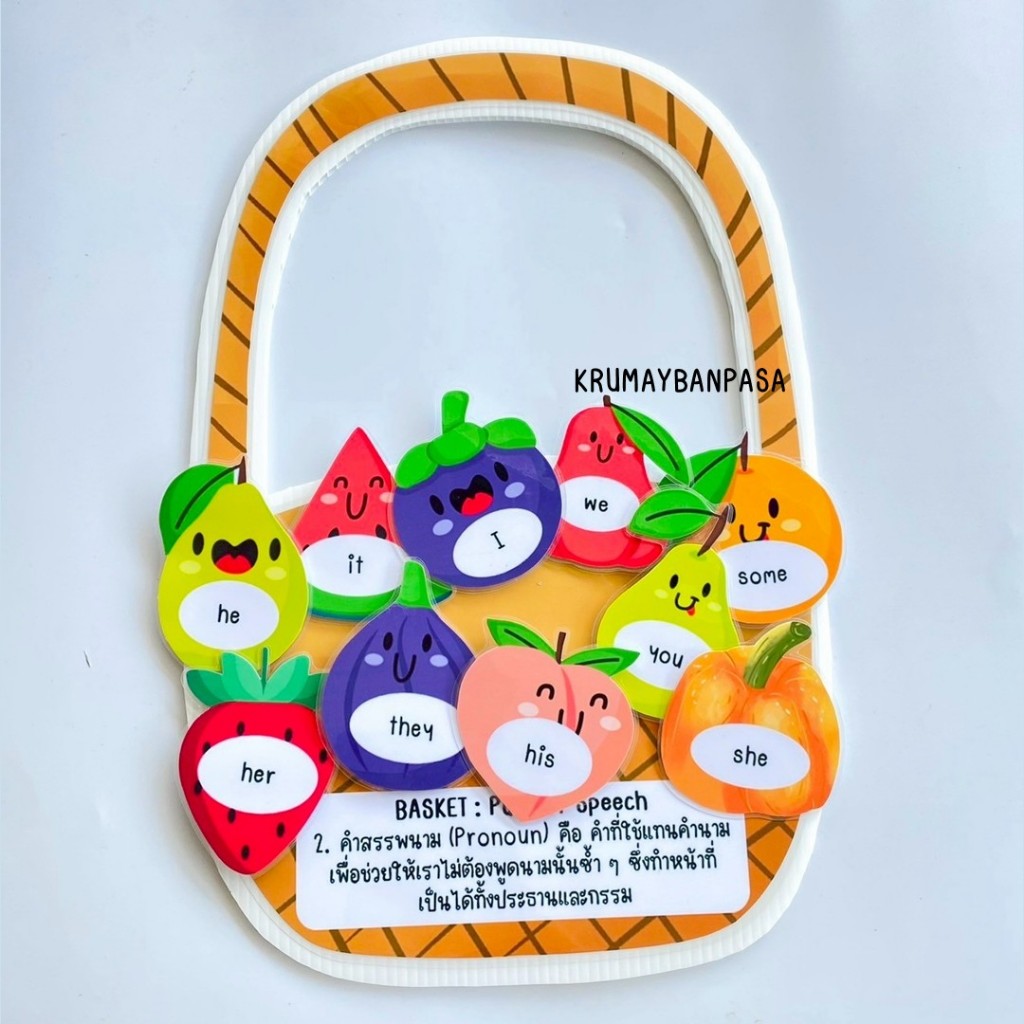 สื่อตระกร้าPartofSpeech เกมสื่อการสอนงานสำเร็จ เคลือบร้อนติดตีนตุ๊กแก สื่่อการสอนภาษาอังกฤษ