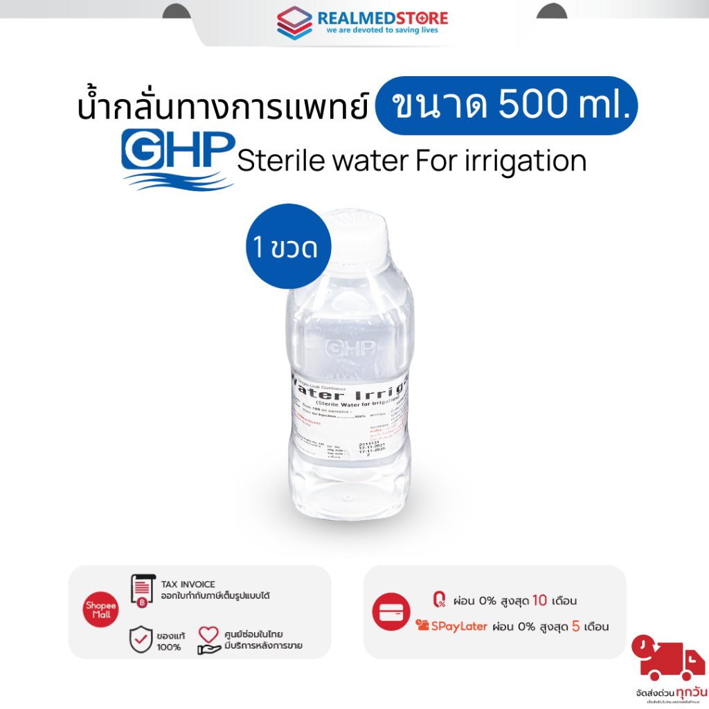 น้ำกลั่นออกซิเจน Sterile water for irrigation ขนาด 500 ml