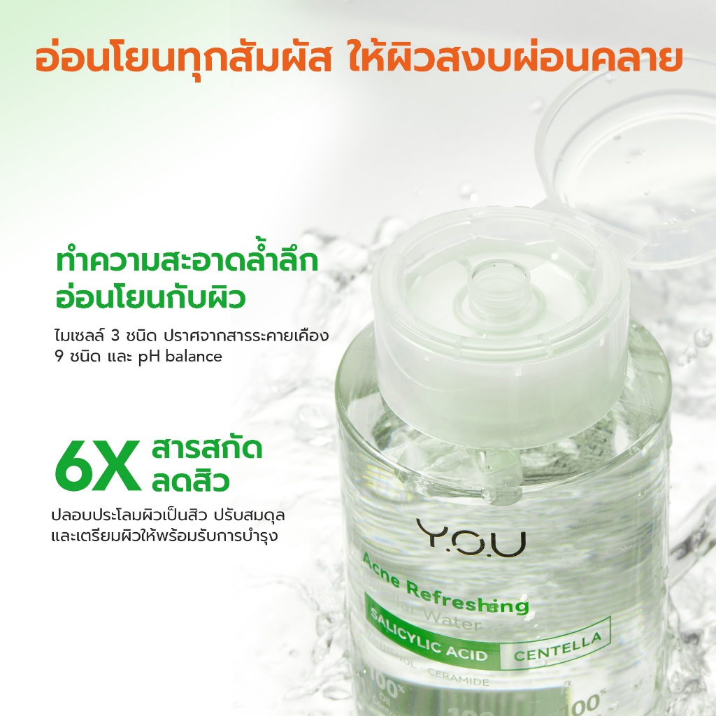 YOU Acne Refreshing Micellar Water 100ml ไมเซลลาร์วอเตอร์ คลีนซิ่งลบเมคอัพ สูตรอ่อนโยน-สิว ลดความมัน ไม่ระคายเคือง
