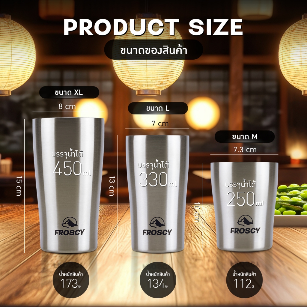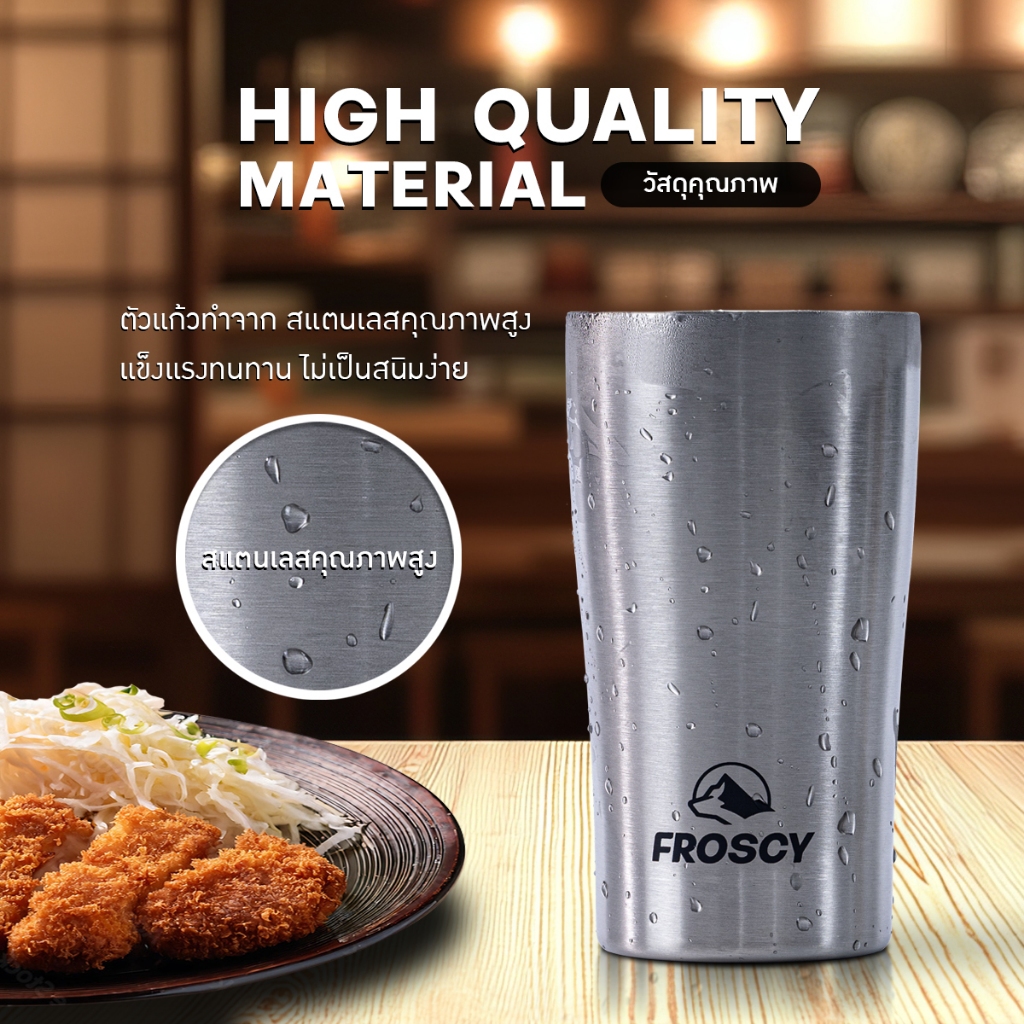 FROSCY แก้วเก็บความเย็น รุ่น Sipper แก้วสแตนเลส 2 ชั้น สูญญากาศ เก็บอุณหภูมิได้ยาวนาน