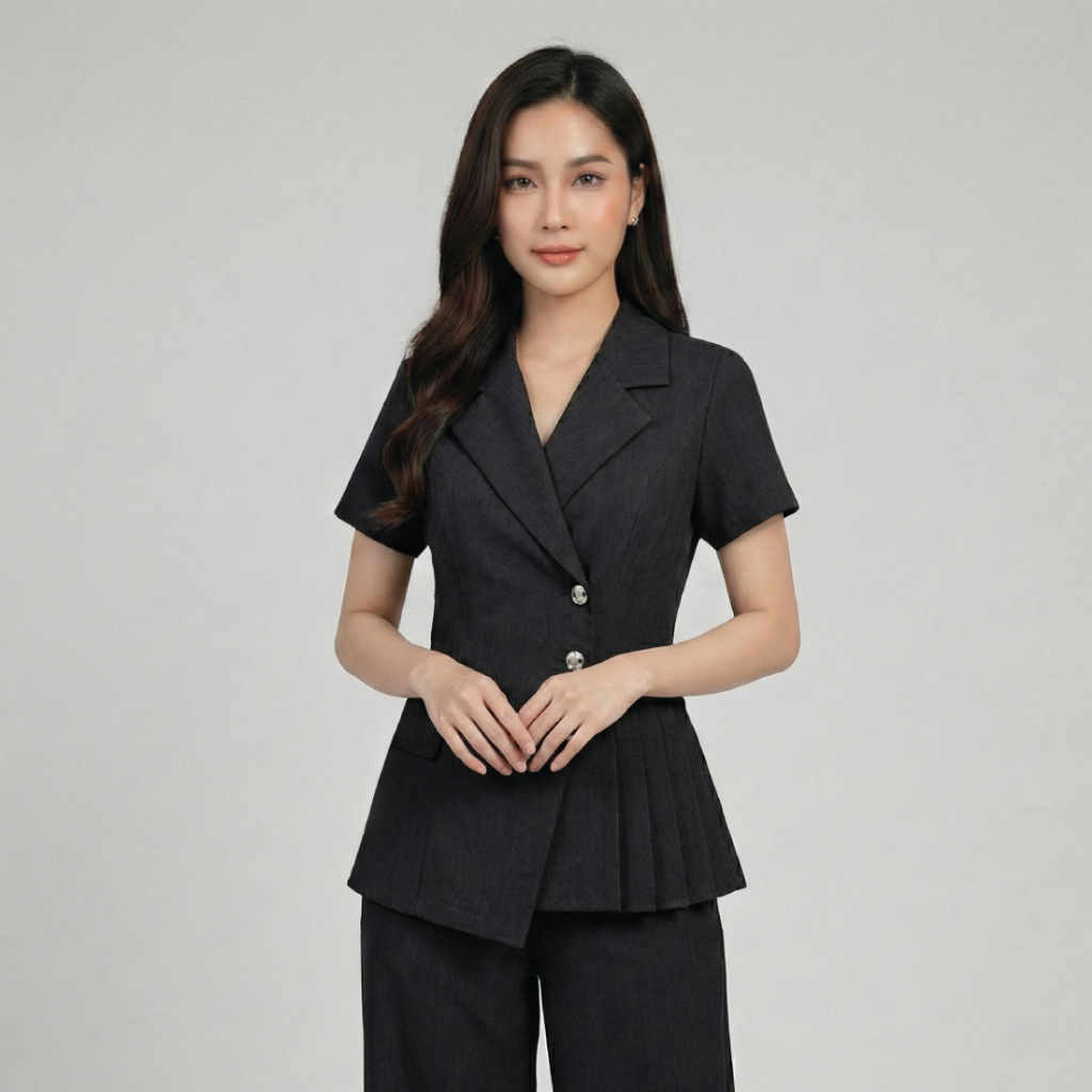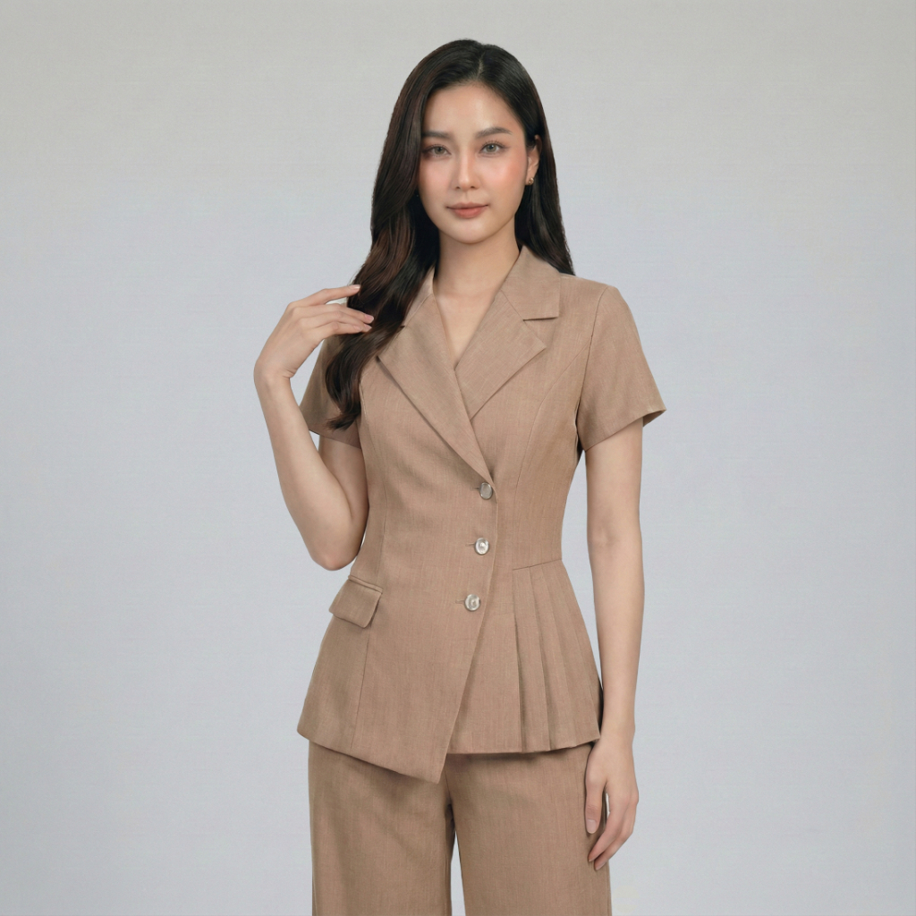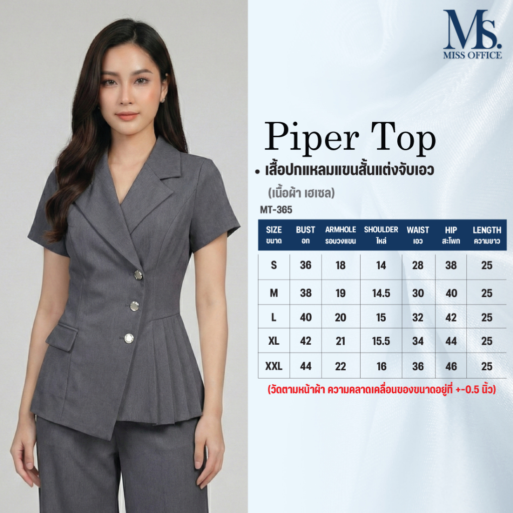 Miss Office เสื้อปกแหลมแขนสั้นแต่งจีบเอว (Piper Top) (MT-365)
