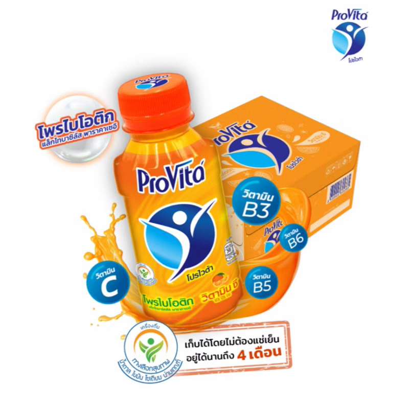 แท้ 100% (1ลัง/30ขวด) โปรไวต้า เครื่องดื่มโพรไบโอติกผสมวิตามิน รสส้ม ยกลัง 30ขวด // Pro Vita Orange 150ml. //