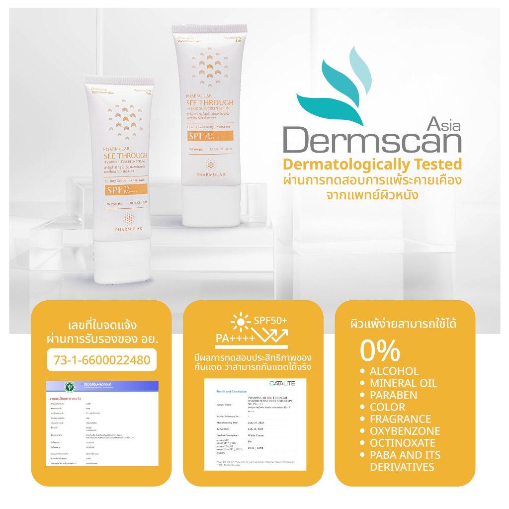 ⭐️ ฟาร์มูล่า ครีมกันแดด สูตรน้ำ Pharmular See Through Hybrid Sunscreen Serum SPF 50+ PA+++ ( กันแดดซีทรู ) - ขนาด 30 ml.
