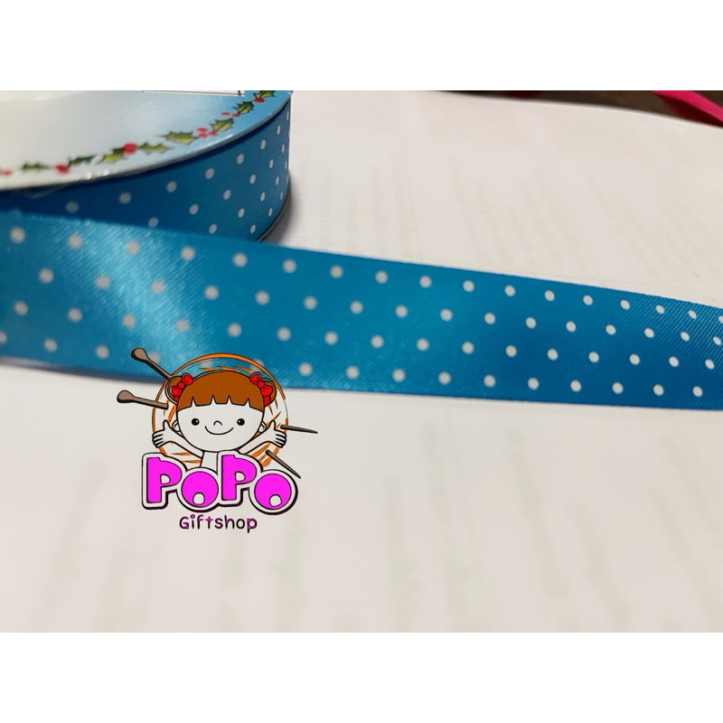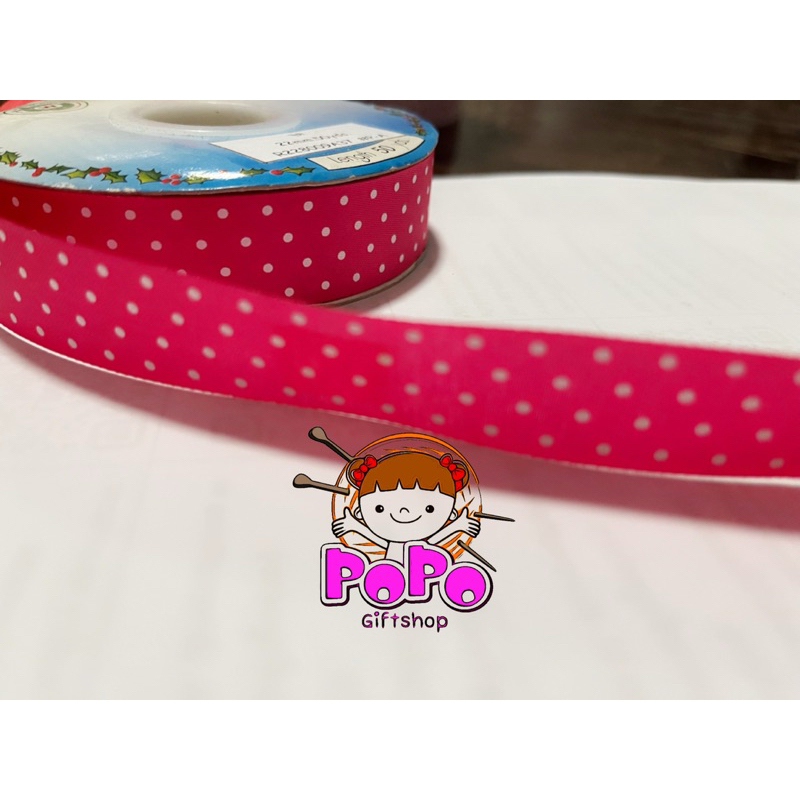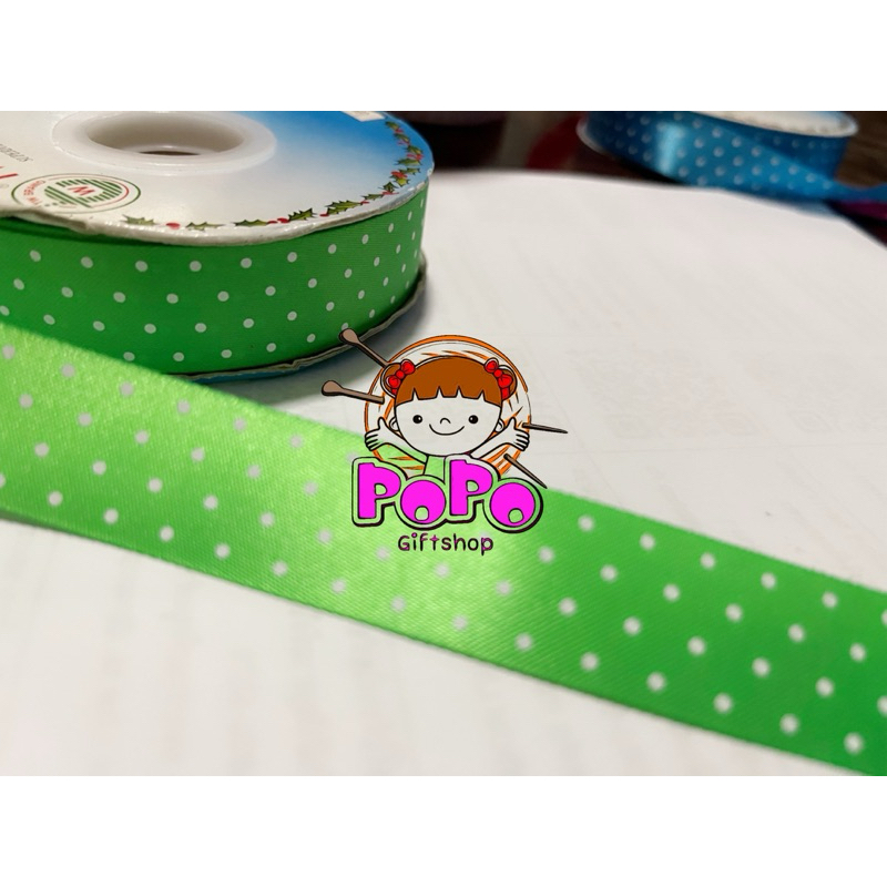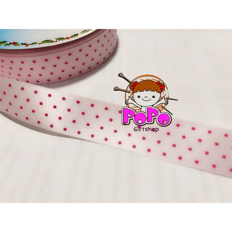 ริบบิ้นผ้าต่วน ลายจุด 7 สี สูง 2.2 ซม 100 ซม 10 บาท