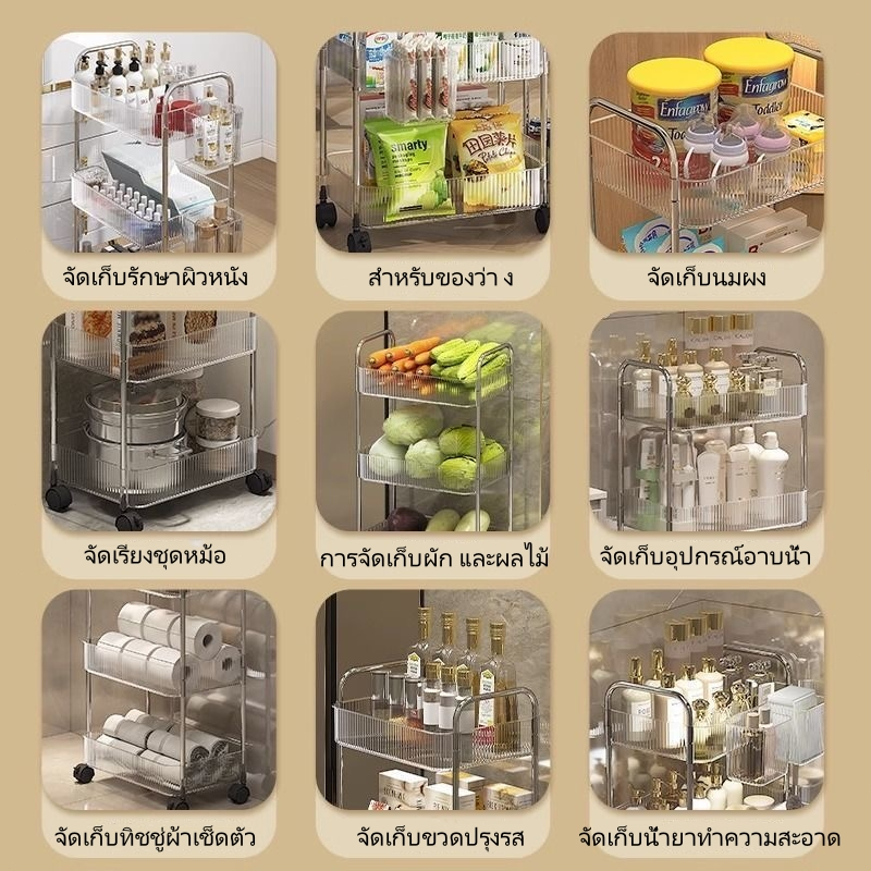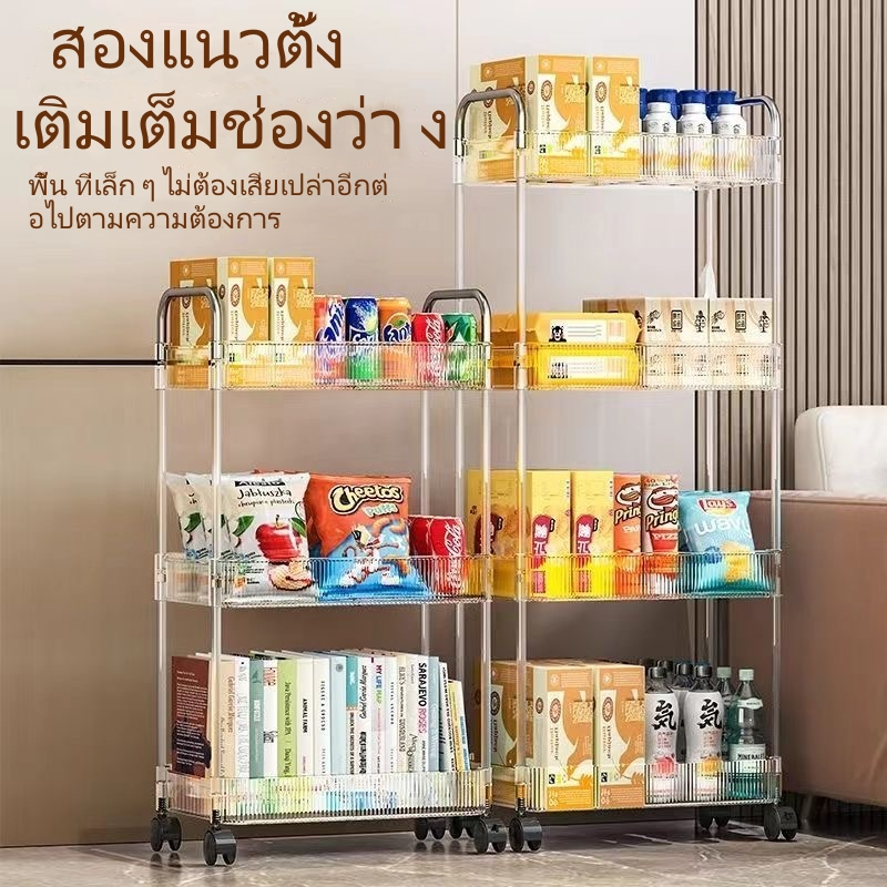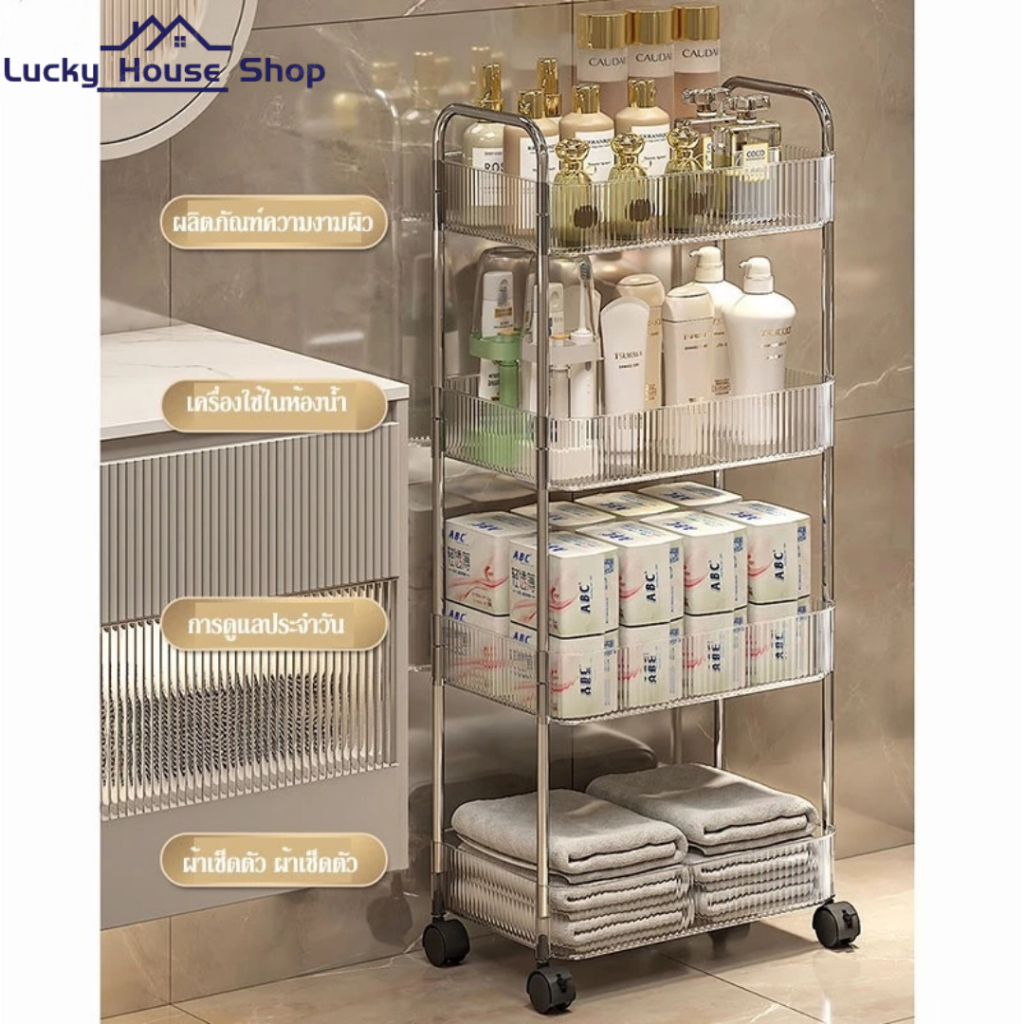 LHS [ดีไซน์โปร่งใส] ชั้นวางของรถเข็นพลาสติก 2/3/4ชั้น มีล้อเลื่อนเคลื่อนย้ายสะดวก รถเข็นเก็บของ ชั้นวางเครื่องสำอาง