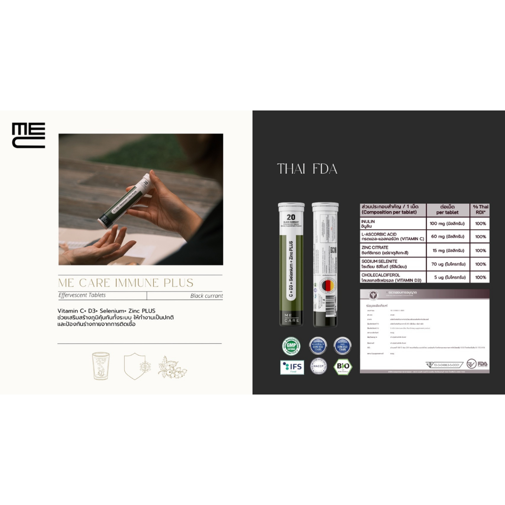 (พร้อมจัดส่ง) ME CARE IMMUNE PLUS วิตามินอาหารเสิรมเม็ดฟู่เเบบละลายน้ำ 1 หลอด