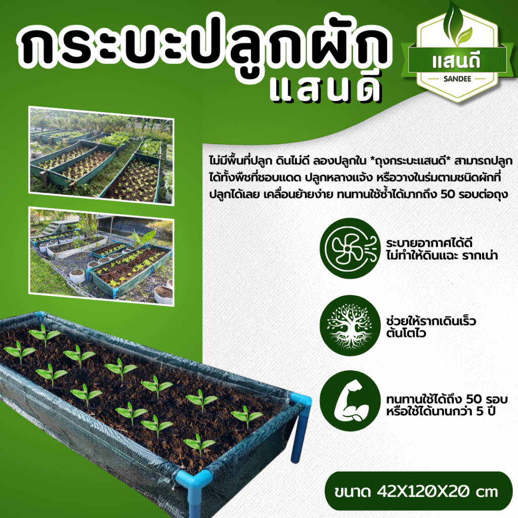 【พร้อมส่ง】กะบะปลูกผักตราแสนดี (พร้อมโครง/ไม่รวมโครง)ขนาด 42x120x20 cm. แปลงผักเพาะปลูกผัก