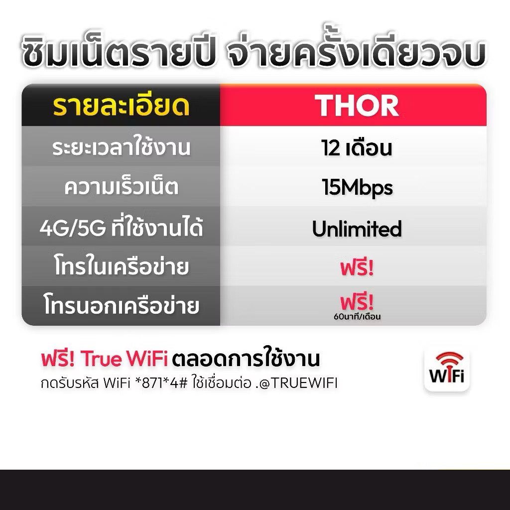 เลขมงคล ซิมเทพธอร์ ของแท้ Thor ซิมเทพ 15mbps ไม่ลดสปีด sim เทพ 1ปี โทรในเครือข่าย ซิมทรู truemove