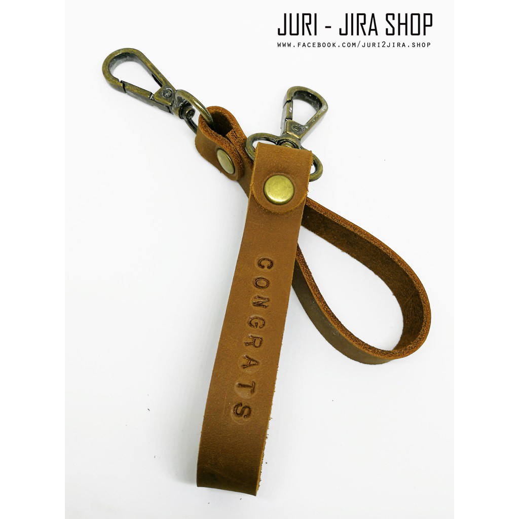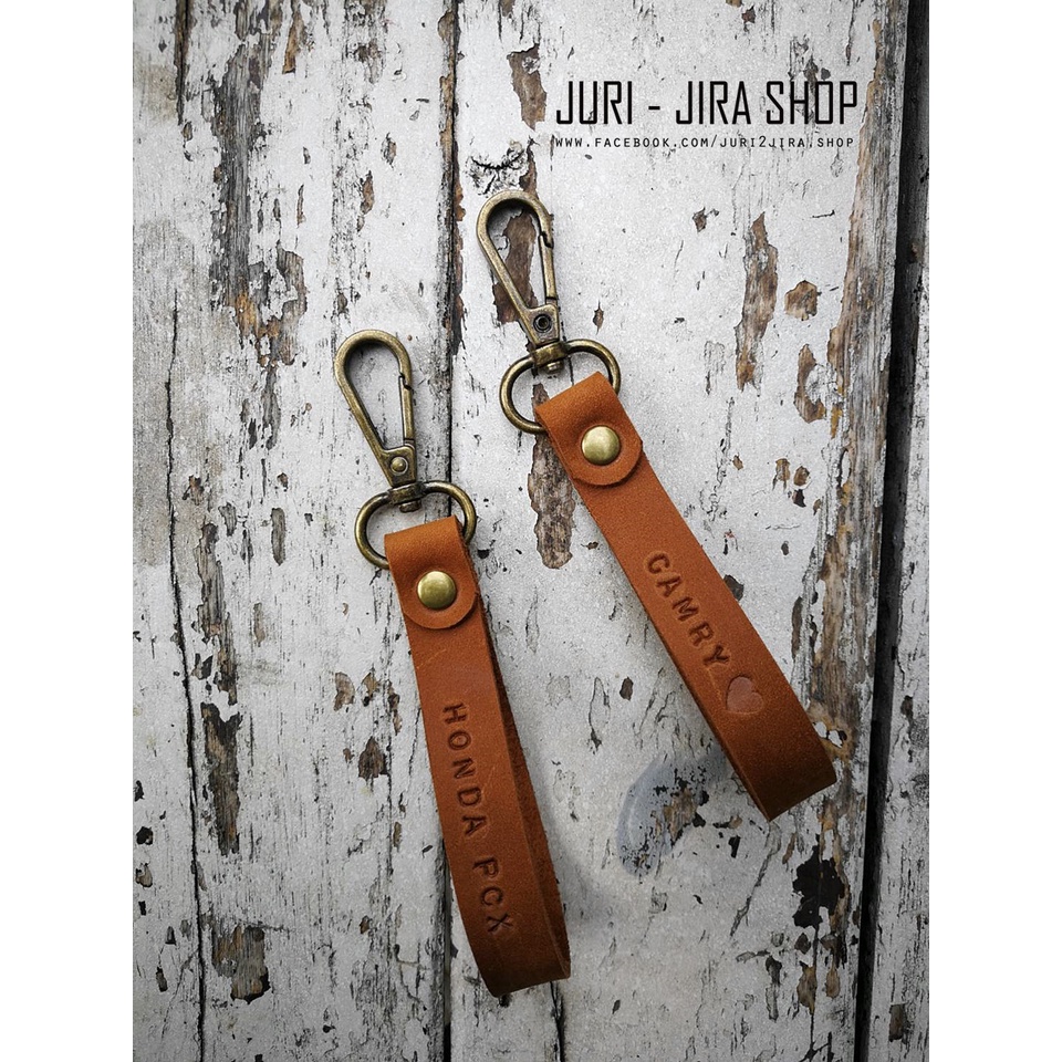 พวงกุญแจหนังแท้ หัวตะขอรมควัน สลักชื่อได้/ ชิ้นเดียวก็ขายค่ะ