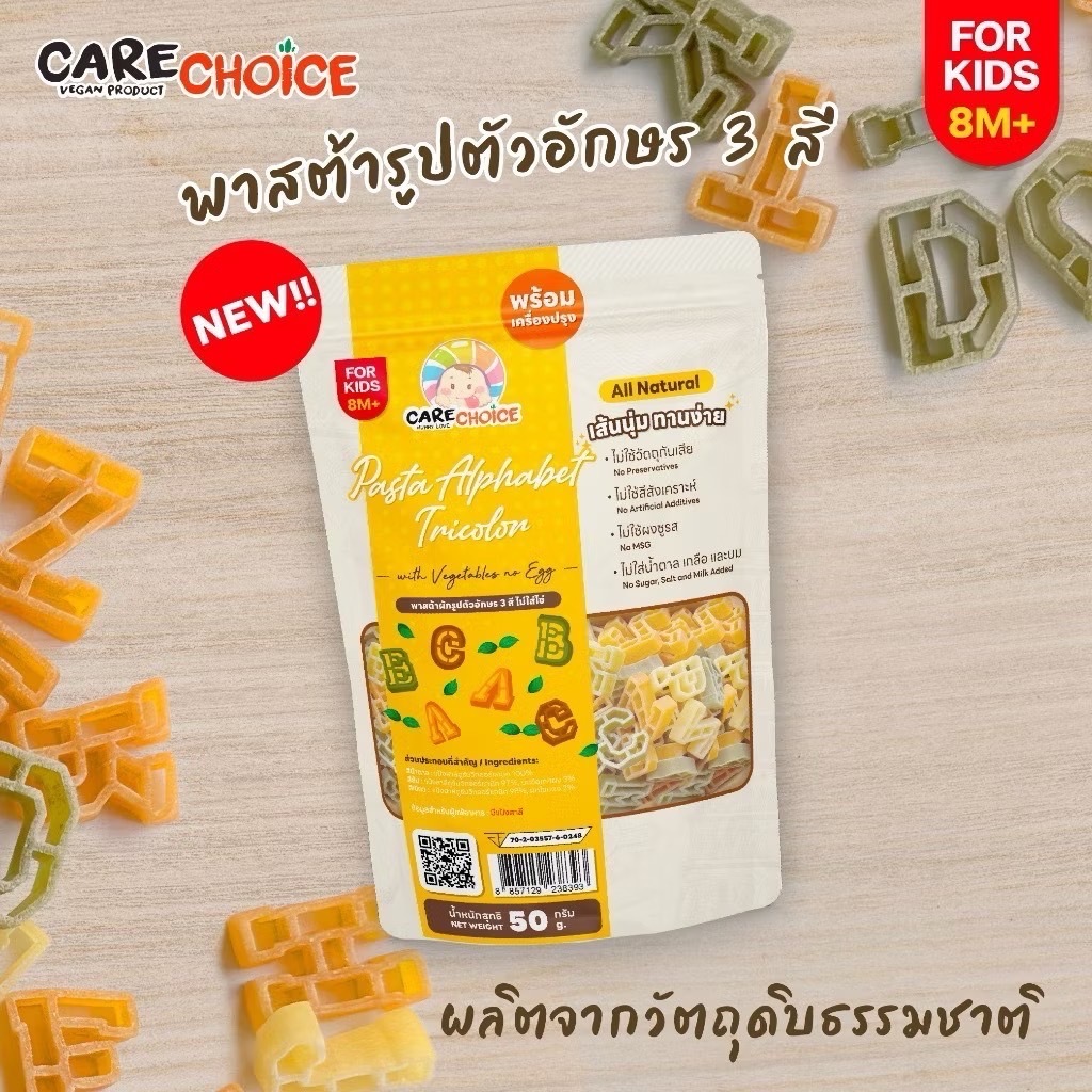 Care Choice (แคร์ช้อยส์) เส้นพาสต้าผสมผักรวม อาหารเด็ก 8 เดือนขึ้นไป 50กรัม