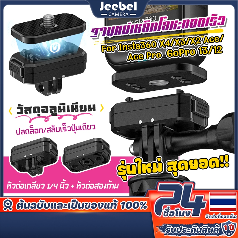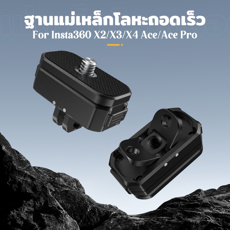 Camera Magnetic Mount Base ตัวยึดแม่เหล็กแบบปลดเร็ว Tripod Holder 1/4" Screw Two Claw Adapter For Insta360 X5/X4 GoPro