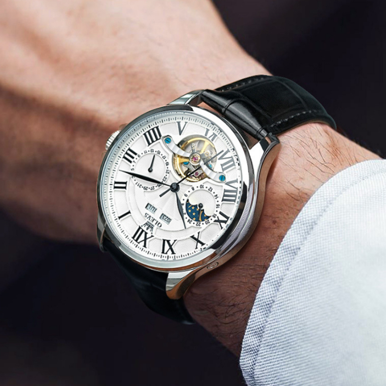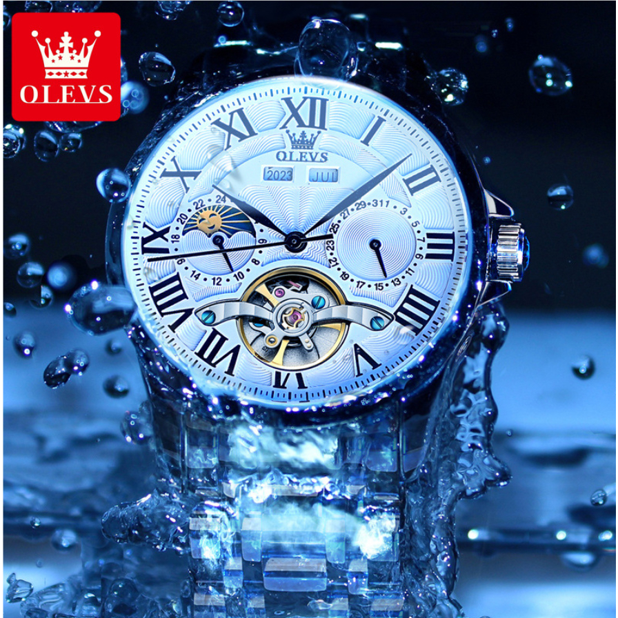มะกอก 7013 แฟชั่นปฏิทินลําลองนาฬิกากลไกอัตโนมัติดวงจันทร์เฟสนาฬิกาผู้ชาย (ฟรีกล่องนาฬิกาประณีต)