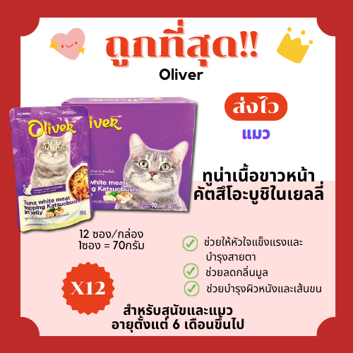 (โค้ดส่งฟรี0บาท)Oliver (โอลิเวอร์) อาหารสุนัขและแมวเปียก 70g(ยกโหล12ซอง)ถูกที่สุด ครบ6รสชาติ