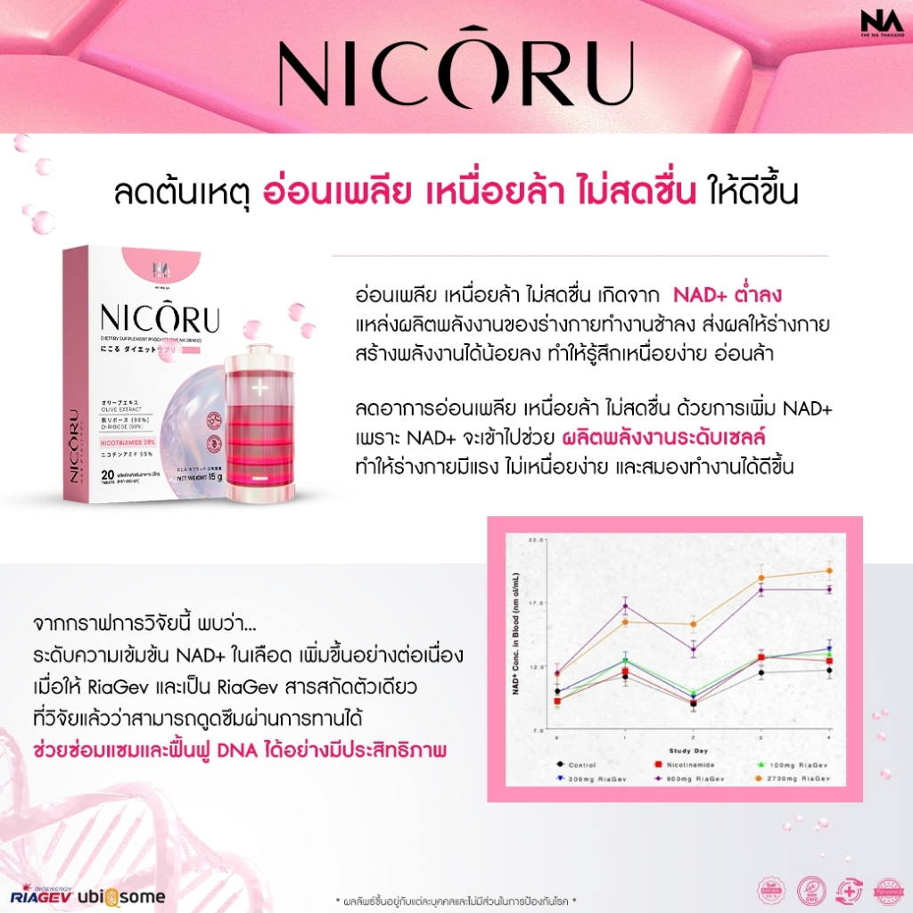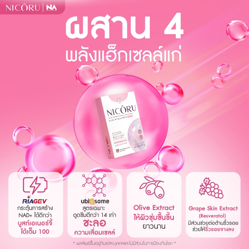 THE NA NICORU NAD+ กล่องละ 20 เม็ด ผลัดผิวใส ไม่ต้องดริป ชะลอวัย NMN บำรุงสมอง ความจำ หลับลึก สดชื่น