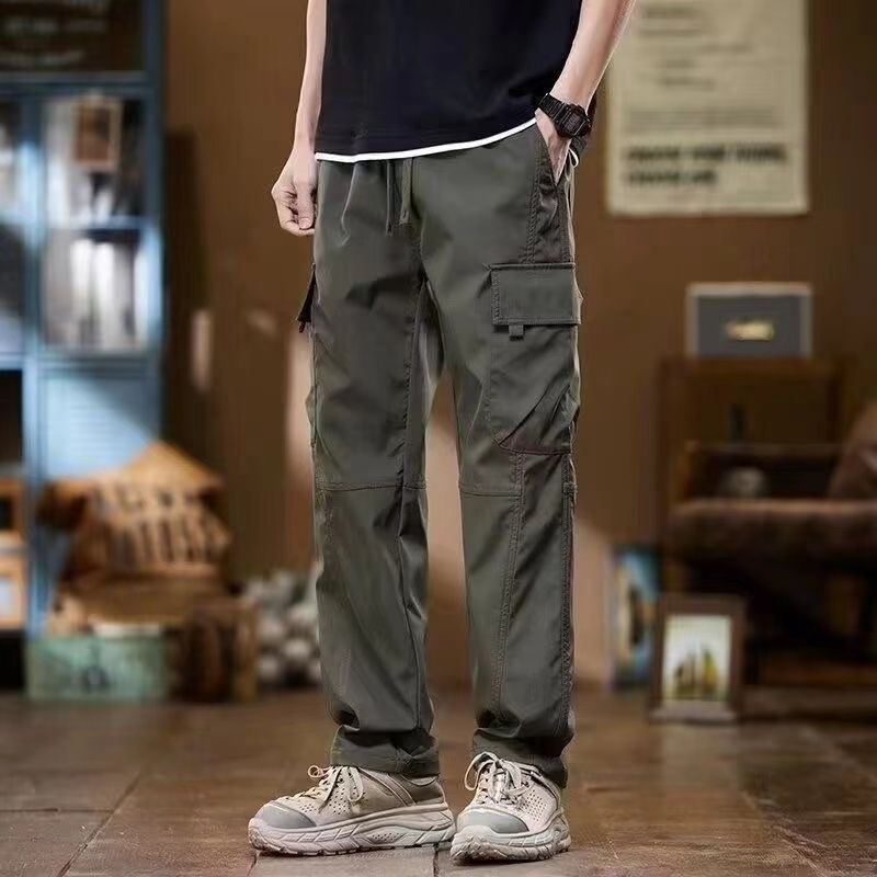 กางเกงคาร์โก้ผู้ชาย ทรงหลวม ทรงตรง มีหลายกระเป๋า เอวยางยืด กางเกงผู้ชาย คล่องแคล่วและสบายสบาย M-4XL
