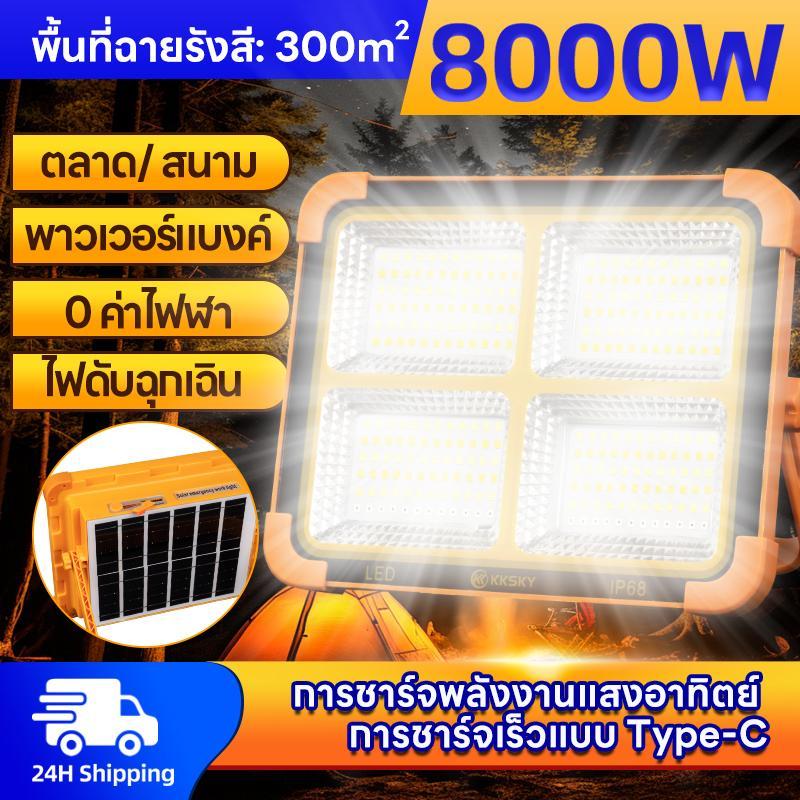KING ไฟโซล่าเซลล์ 1แถม1 8000W ไฟฉุกเฉิน สปอตไลท์พกพา ไฟพกพาอเนกประสง Solar light ไฟฉุกเฉินในบ้าน กันน้ำ