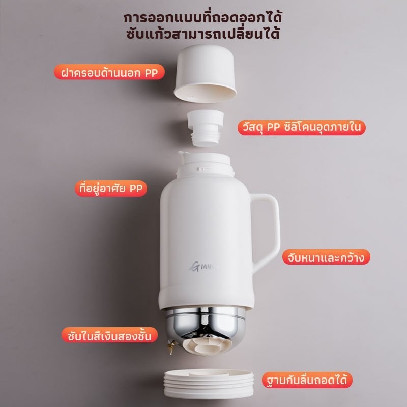 GIANXI กระติกเก็บความร้อน แบบพกพา 1L/1.6L - เก็บร้อน 12ชม. กันน้ำทนทาน ปลอดสาร BPA