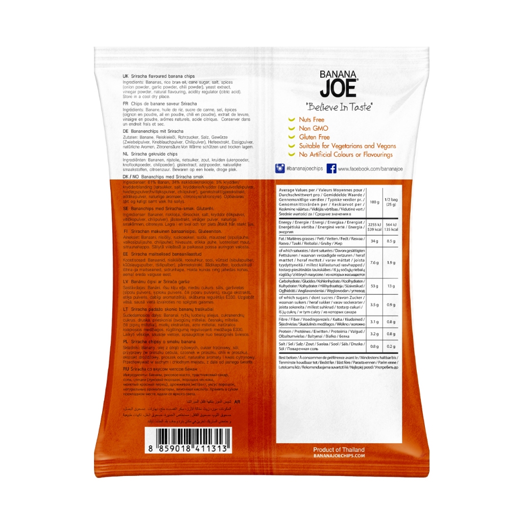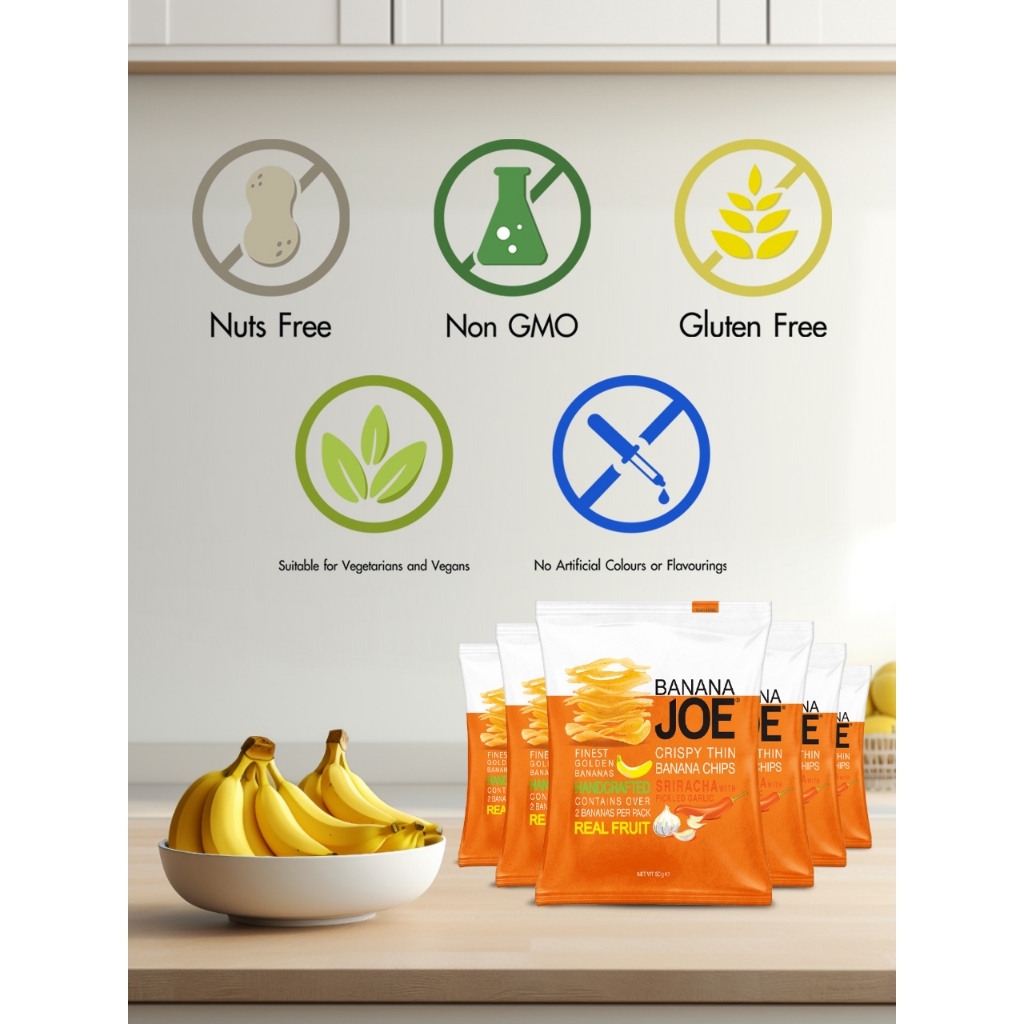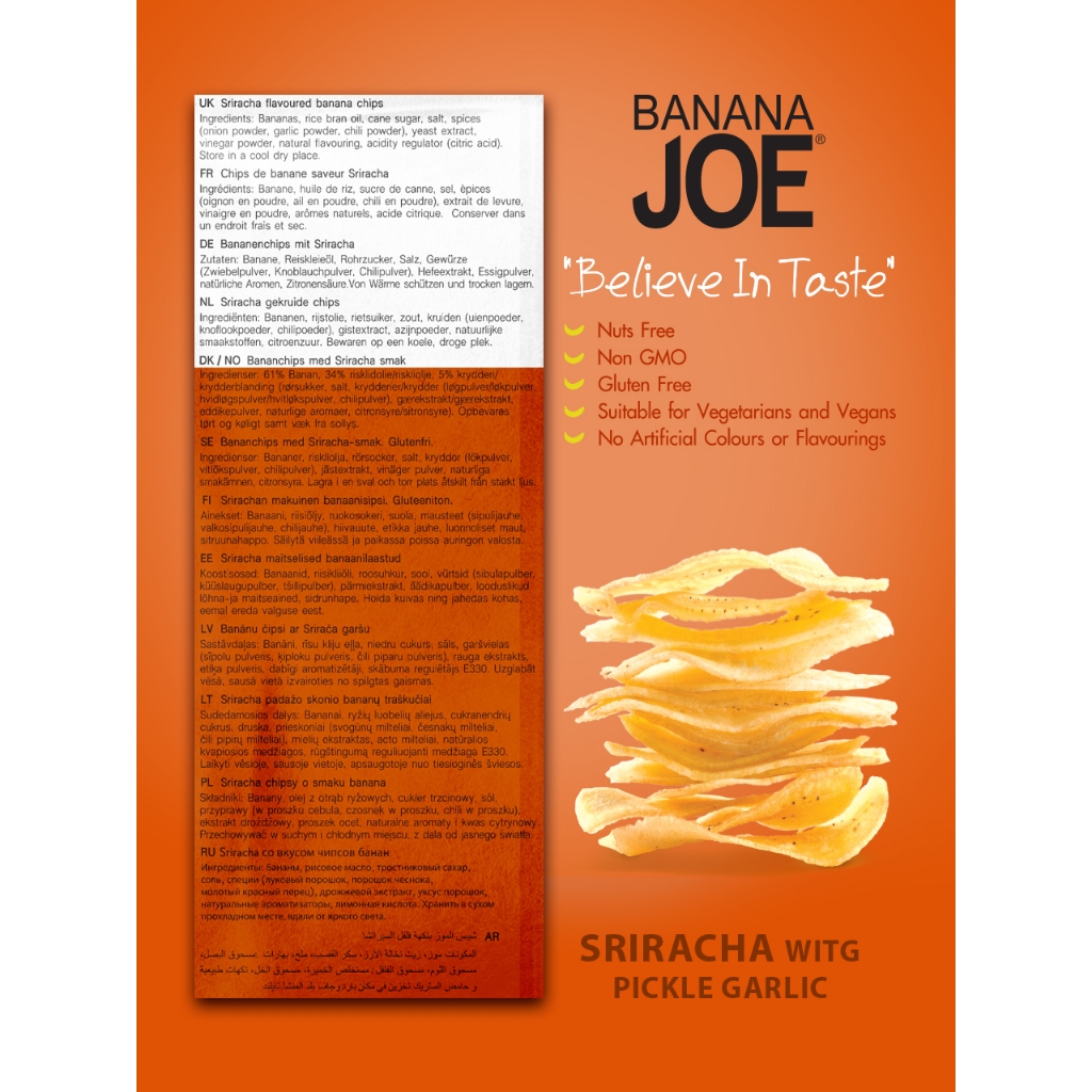 BANANA JOE CRISPY THIN BANANA CHIPS SRIRACHA WITH PICKLED GARLIC P2