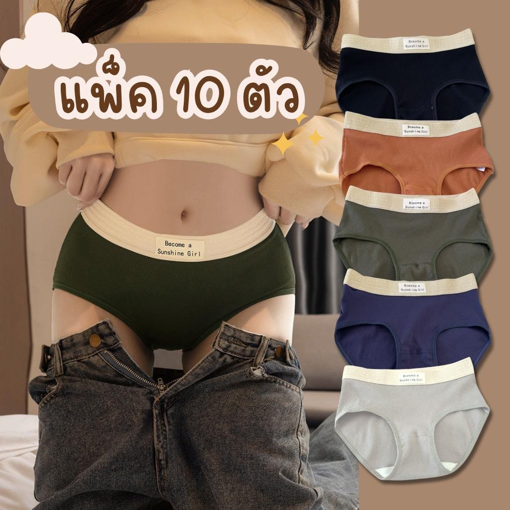 🌸พร้อมส่ง🌸 {เซ็ต 10 ชิ้น} กางเกงในดีไซน์เกาหลี ขายดีมาก! ราคาถูก คุณภาพดีเกินคุ้ม กางเกงชั้นใน ผู้หญิง สีพื้น