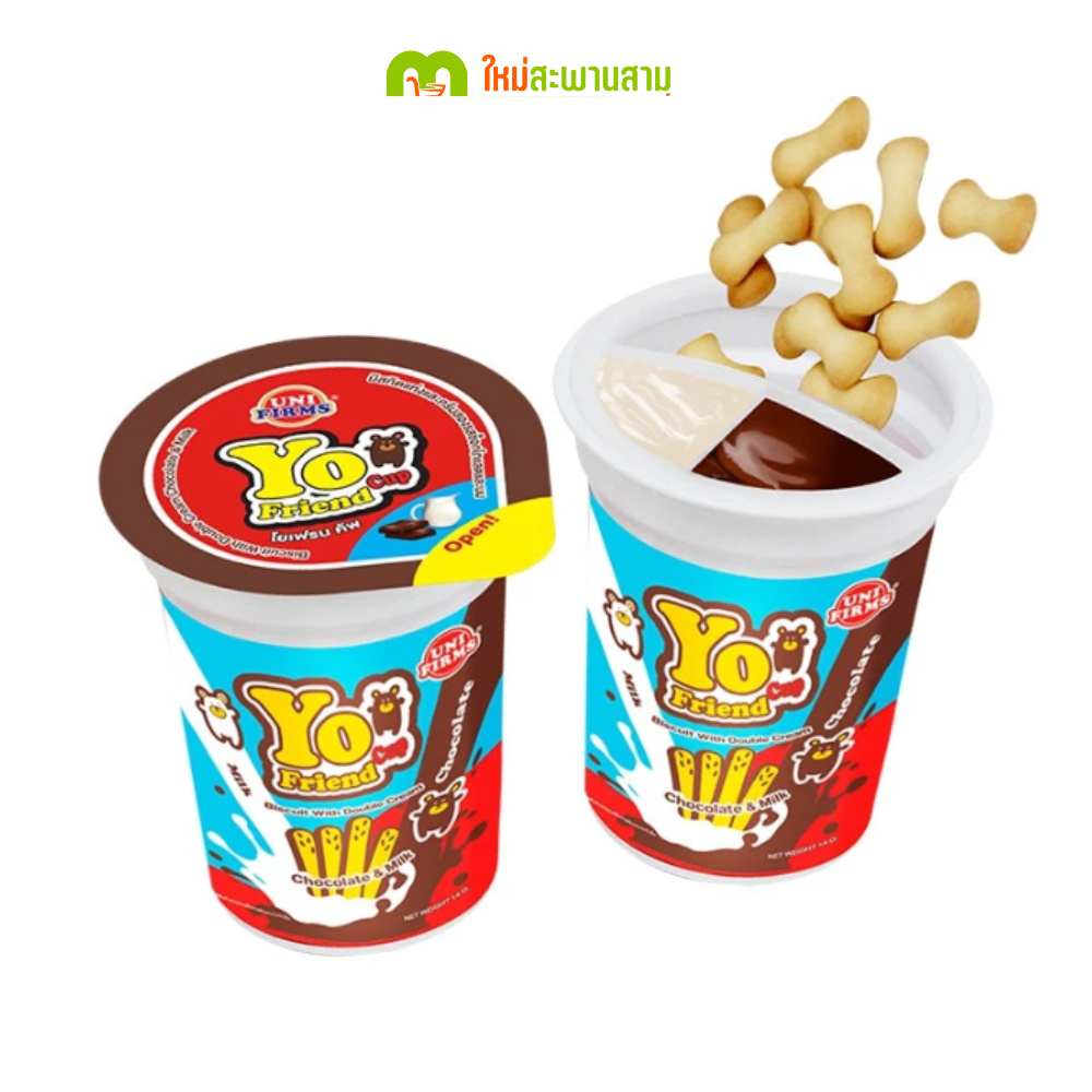 [แพ็คx1] โยเฟรนคัพ Unifirms บิสกิตแท่งช็อกโกแลตนม และสตรอเบอร์รี่ ขนาด 15 กรัม x 12 ถ้วย