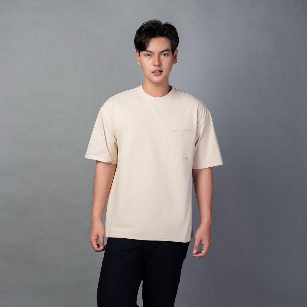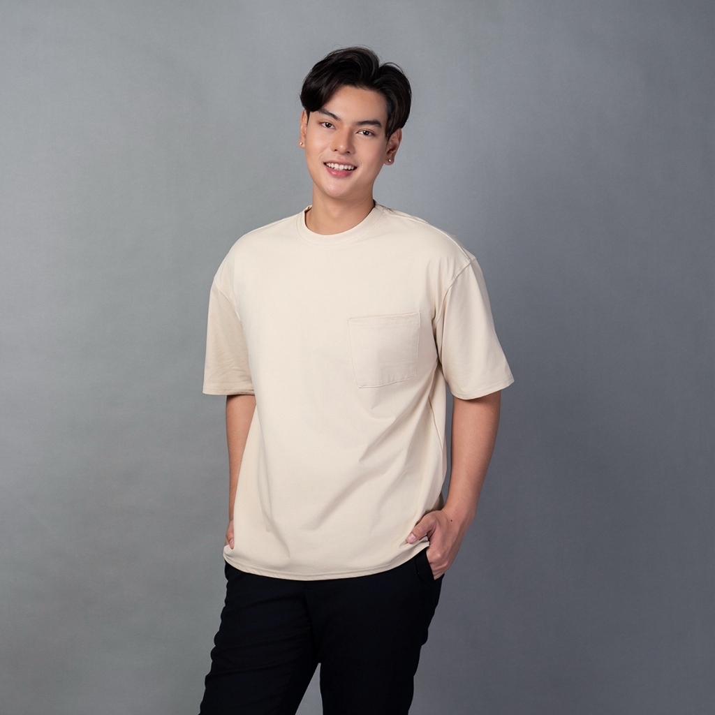 B&R แขนสั้นผู้ชาย T-Shirt การออกแบบกระเป๋า สามสี แฟชั่นเรียบง่าย เนื้อผ้านุ่ม