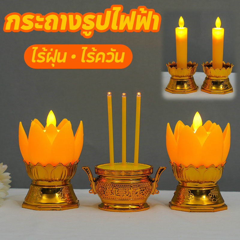 COD กระถางธูปไฟฟ้า LED ใส่ถ่าน ชุดธูปเทียน ไหว้เจ้า บูชาพระ ไร้ฝุ่น ไร้ควัน ใช้งานง่าย