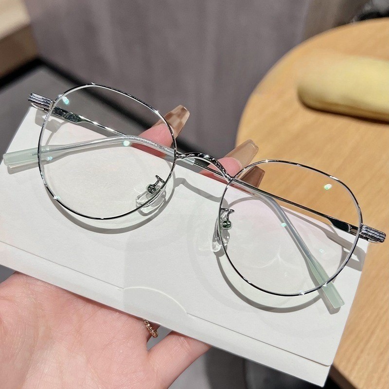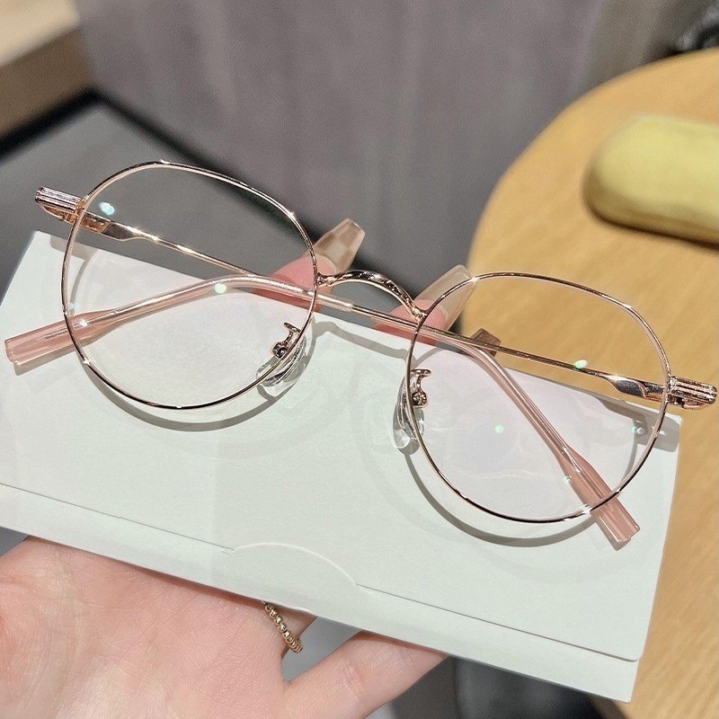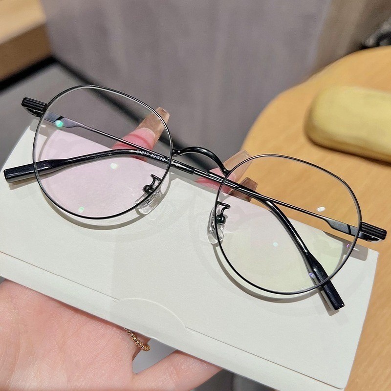 👓แว่นสายตาสั้น👓 -25~425° แว่นป้องกันแสงสีฟ้า กรอบแว่นทรงกลม แว่นตาแฟชั่นผู้ชายและผู้หญิง 1055