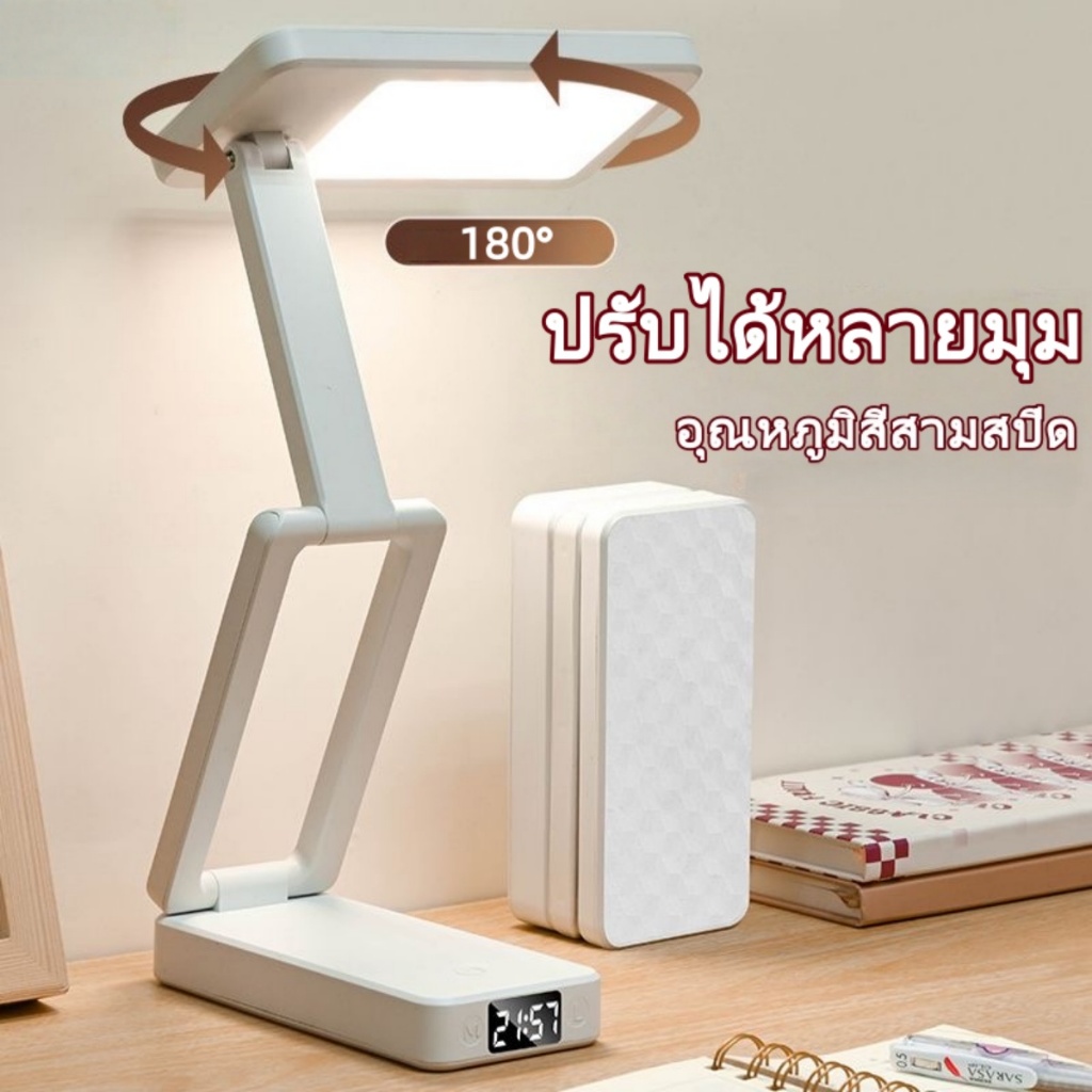 โคมไฟตั้งโต๊ะอัจฉริยะพับได้ ไฟห้อง พับในหนึ่งวินาที แสดงเวลา USBพกพาไปกับคุณ มันสว่างเมื่อคุณสัมผัส
