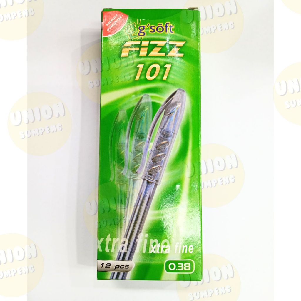 (USP)💢พร้อมส่ง💢(กล่อง12ด้าม) G‘ soft FIZZ 101 ปากกาลูกลื่น ปากกา จีซอฟท์ 0.38 mm. 3สี น้ำเงิน แดง ดำ FIZZ101
