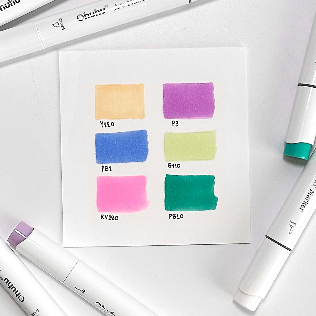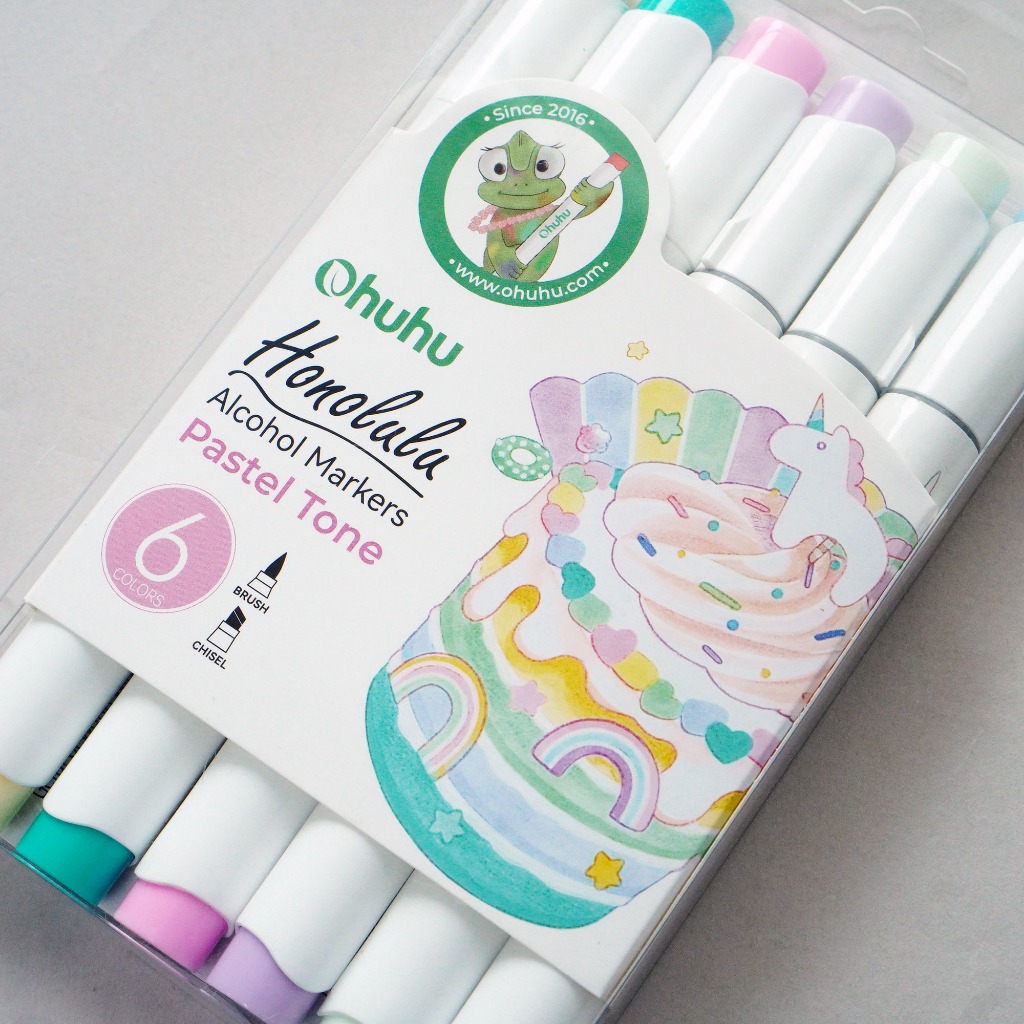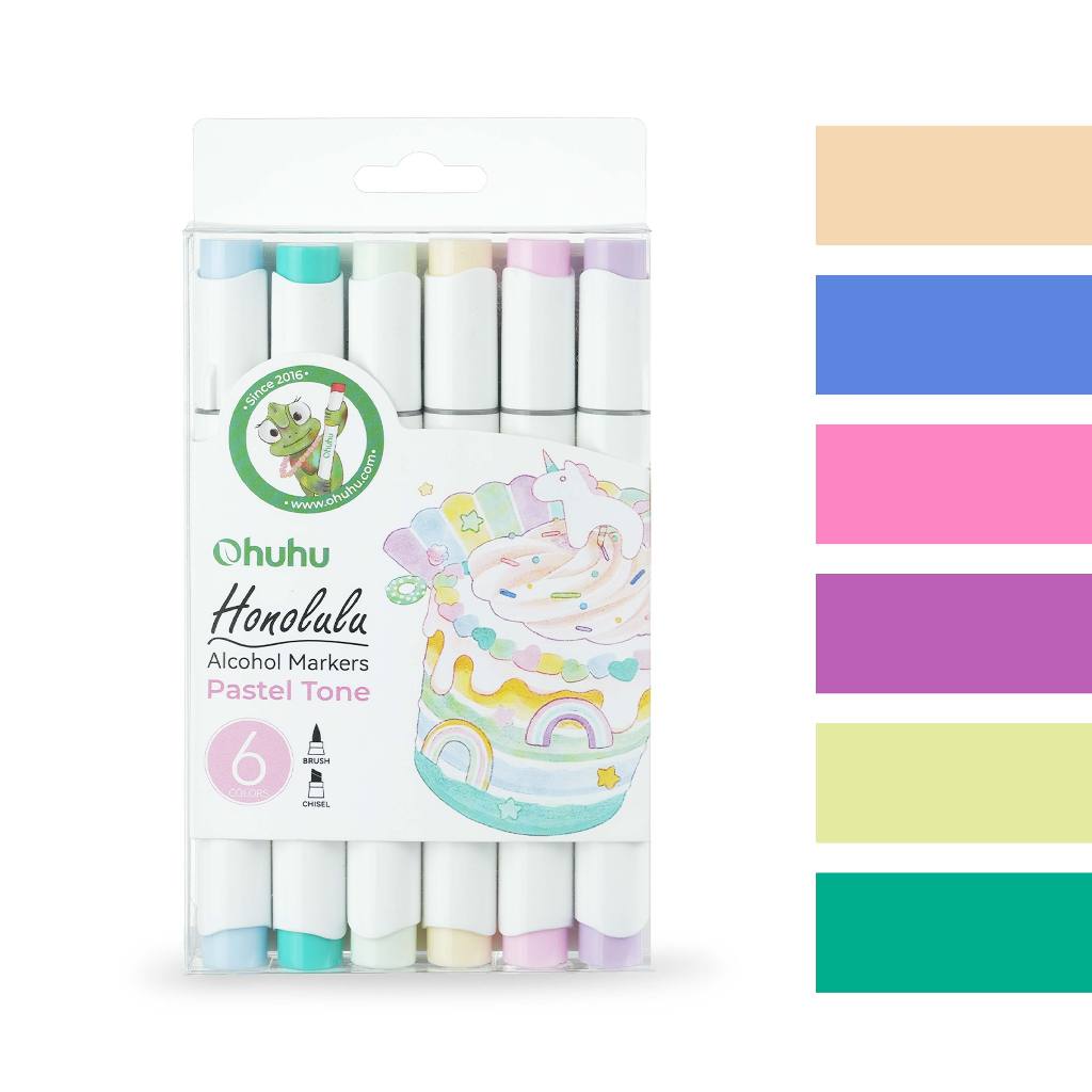 FOLIO ART : ปากกามาร์คเกอร์ Ohuhu Pastel color Pack 6 (BRUSH & CHISEI) 90277