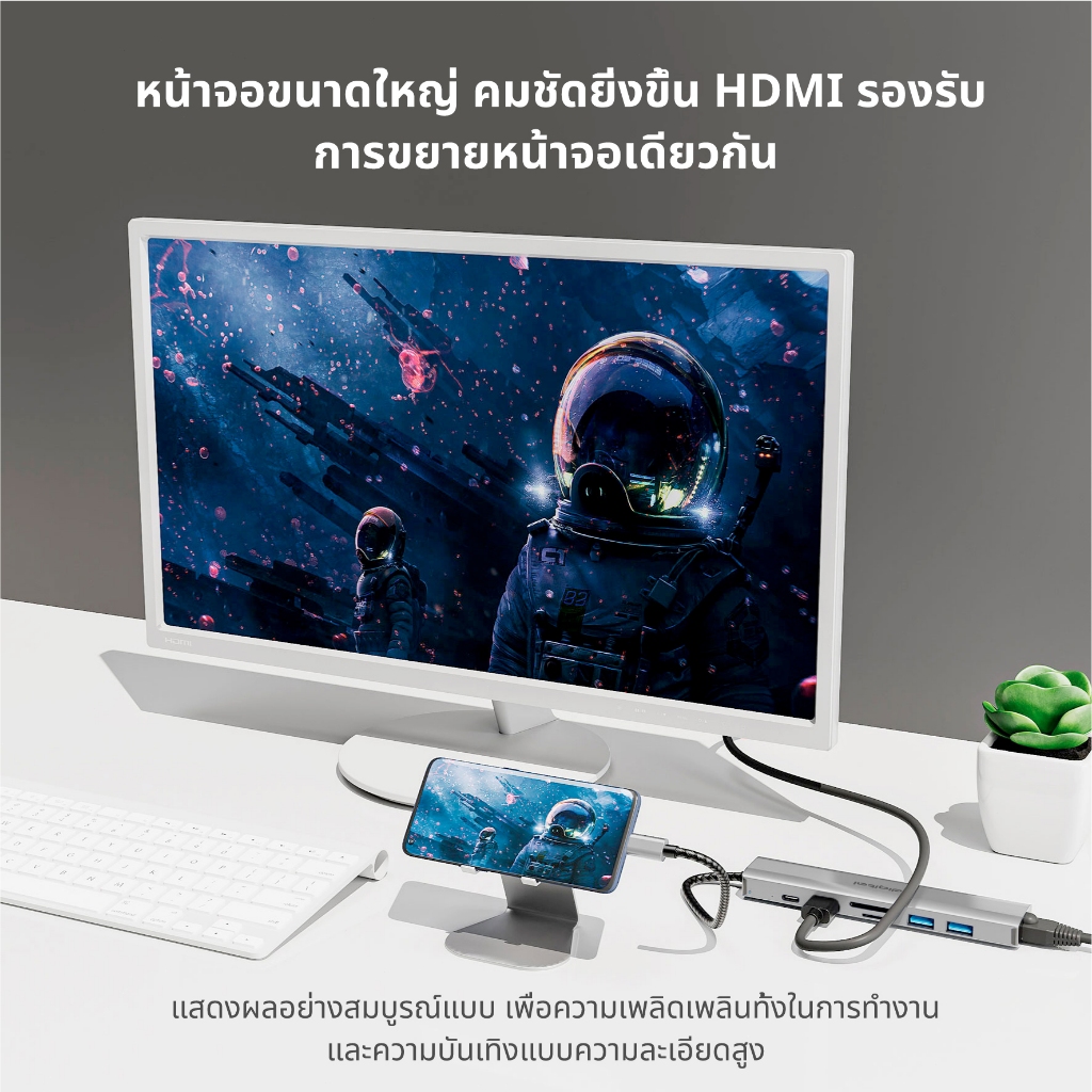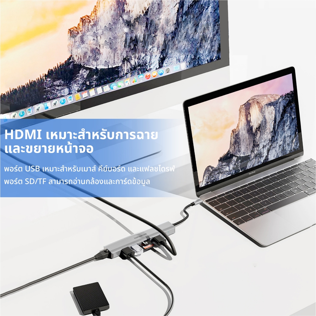 ⚡รุ่นล่าสุด⚡Idigital อะแดปเตอร์ฮับ Type C HUB, USB C เป็น USB3.0,HDMI 4K,1000M RJ45,PD100Wชาร์จเร็ว, การ์ดรีดเดอร์ SD TF