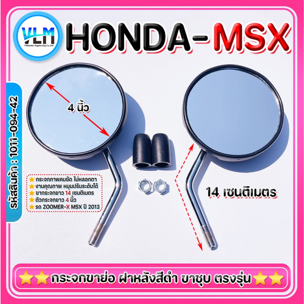 กระจกข้าง HONDA MSX(2013) กระจกZOOMER-X(2013) ขาสั้น ขาชุบ ของแท้ แบรนด์ W&S อย่างดี รหัส1011-094-42