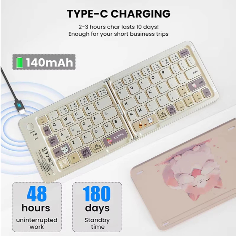 (แป้นพิมพ์ภาษาไทย)MOFii Z1 Re-charge Bluetooth คียบอร์ดขนาดเล็กพับได้ ชาร์จไฟได้ ลายน้องแมว