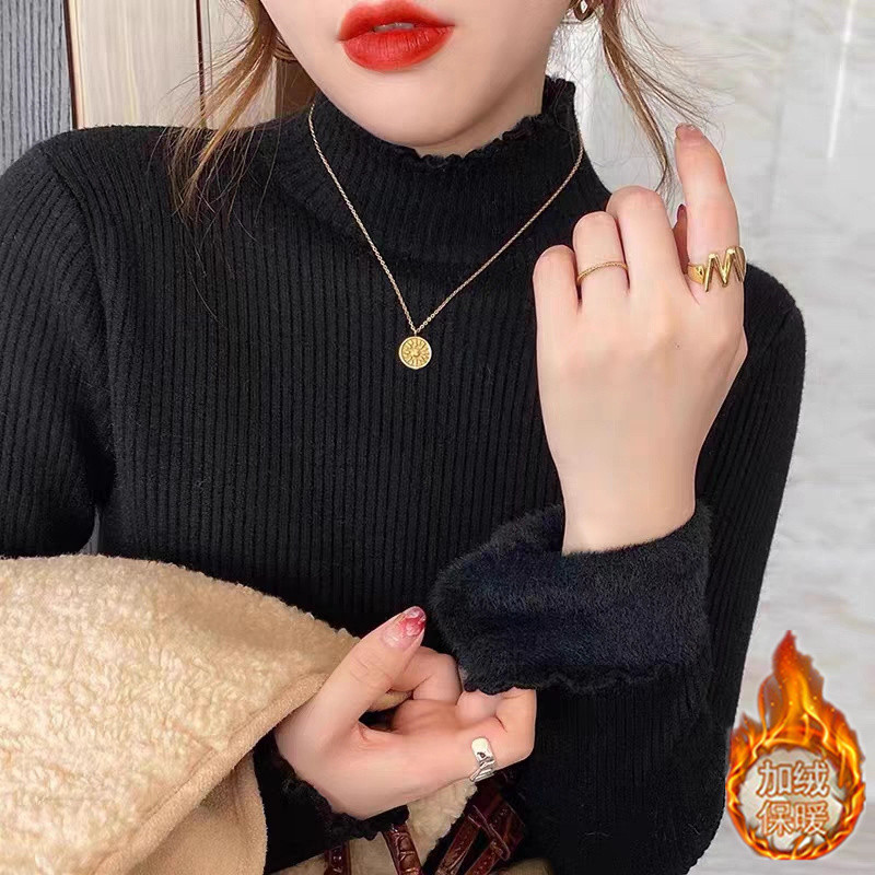 กันหนาว เสื้อคอเต่า เสื้อไหมพรม เสื้อคอเต่า ฮีทเทค เสื้อกันหนาวเสื้อถักคอกึ่งสูงบุขนกำมะหยี่หนาพิเศษมีความยืดหยุ่นสูงรุ่นใหม่สไตล์ฮอตขนแกะชิ้นเดียว