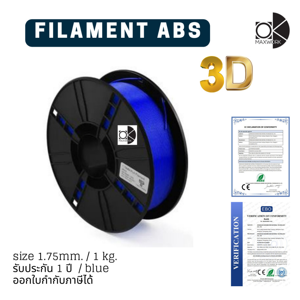 เส้นใยพลาสติก filament ABS 3d สำหรับเครื่องพิมพ์ 3D OKMAXWORKสามารถออกใบกำกับภาษีได้ รับประกัน 1 ปี