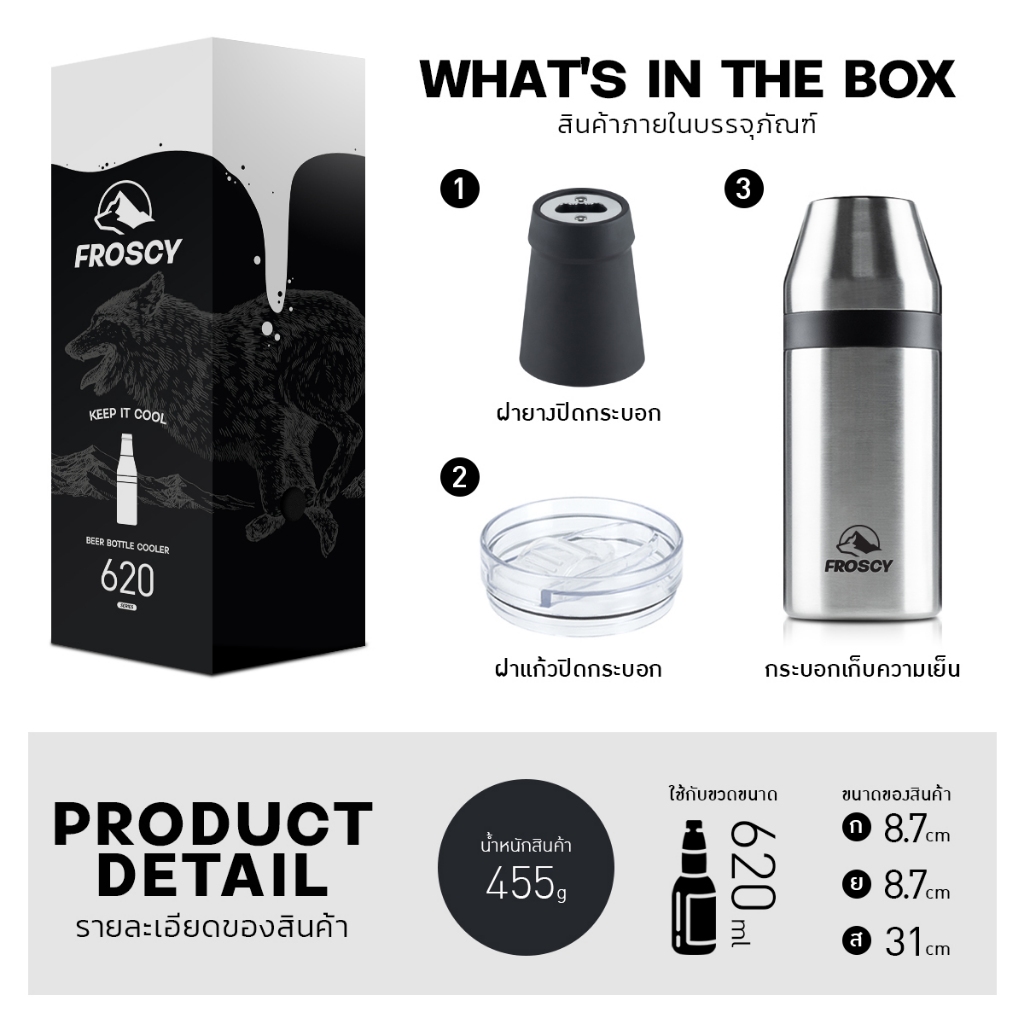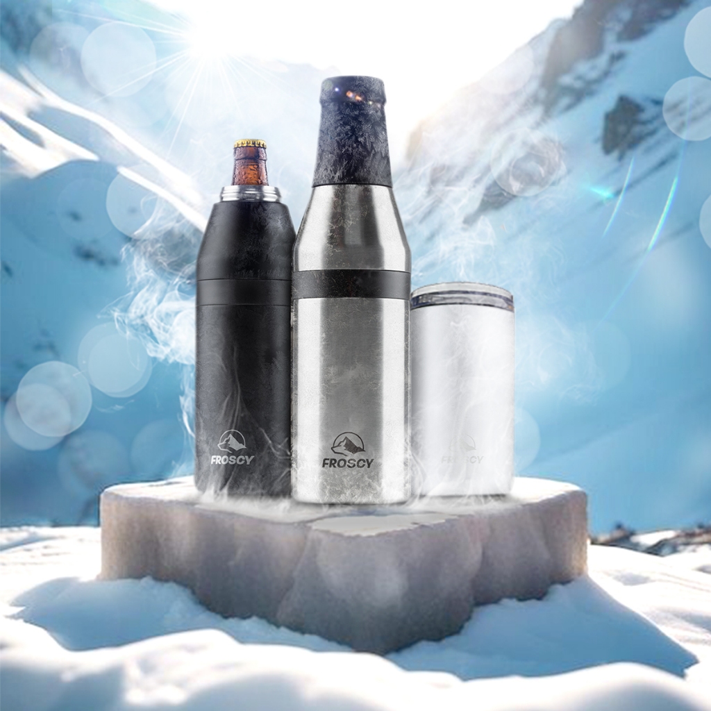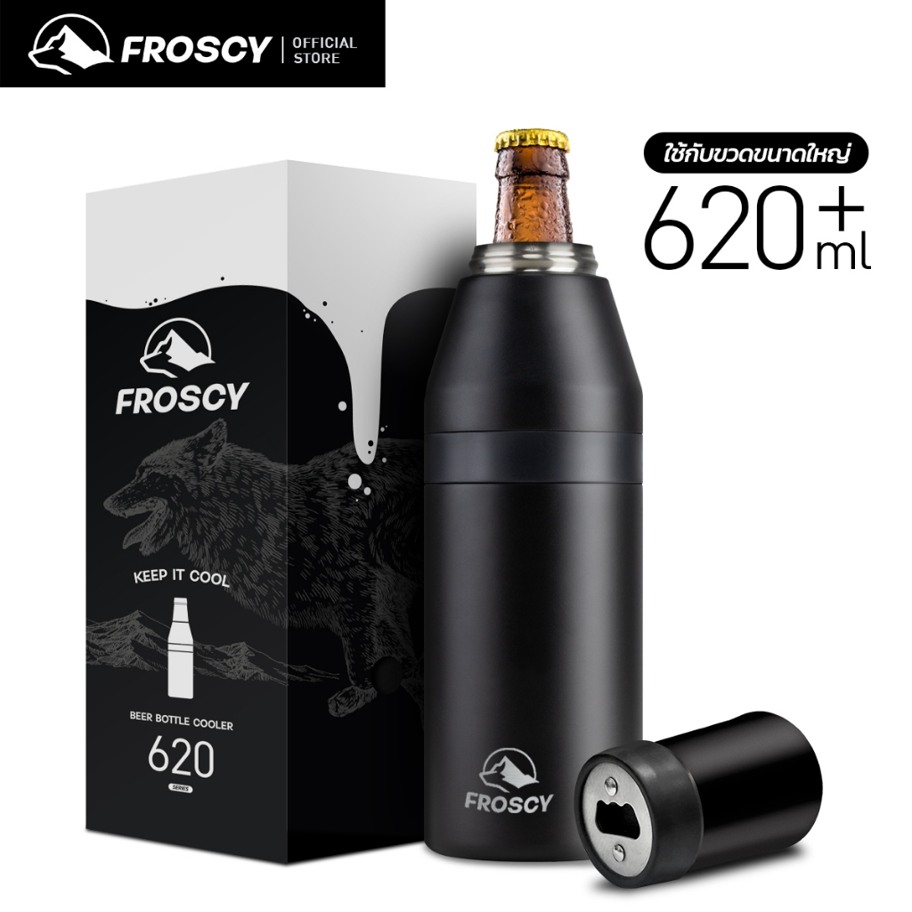FROSCY แก้วเก็บความเย็นสแตนเลส สุญญากาศ (สีดำ) กระบอกเก็บความเย็น เก็บเย็นได้นาน ใช้งานอเนกประสงค์