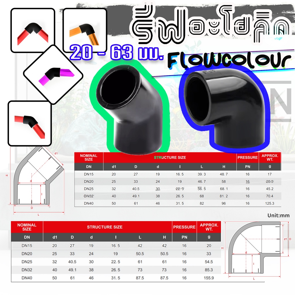 Reef-aholic Flowcolour ข้องอ 45 และ ข้องอ 90 Elbow UPVC สีเข้มเต็มกำลัง สีดำนั้นเอง พร้อมจัดจำหน่าย
