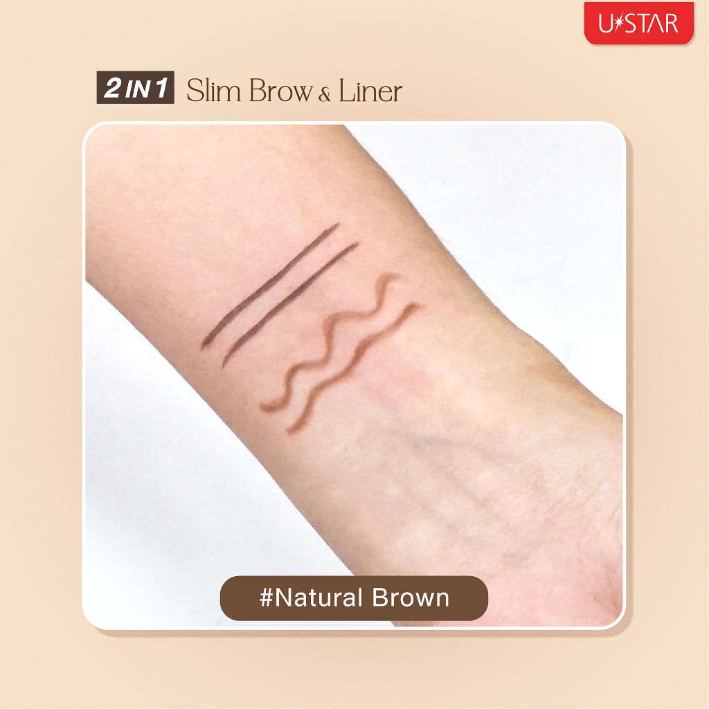 USTAR 2 In 1 Slim Brow Pencil & Liner ดินสอเขียนคิ้ว+พู่กันไลเนอร์วาดเส้นคิ้วสุดปัง ดินสอเขียนคิ้ว