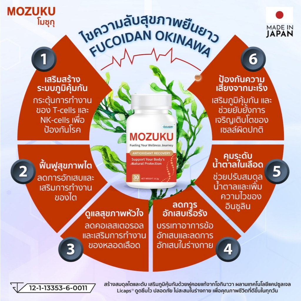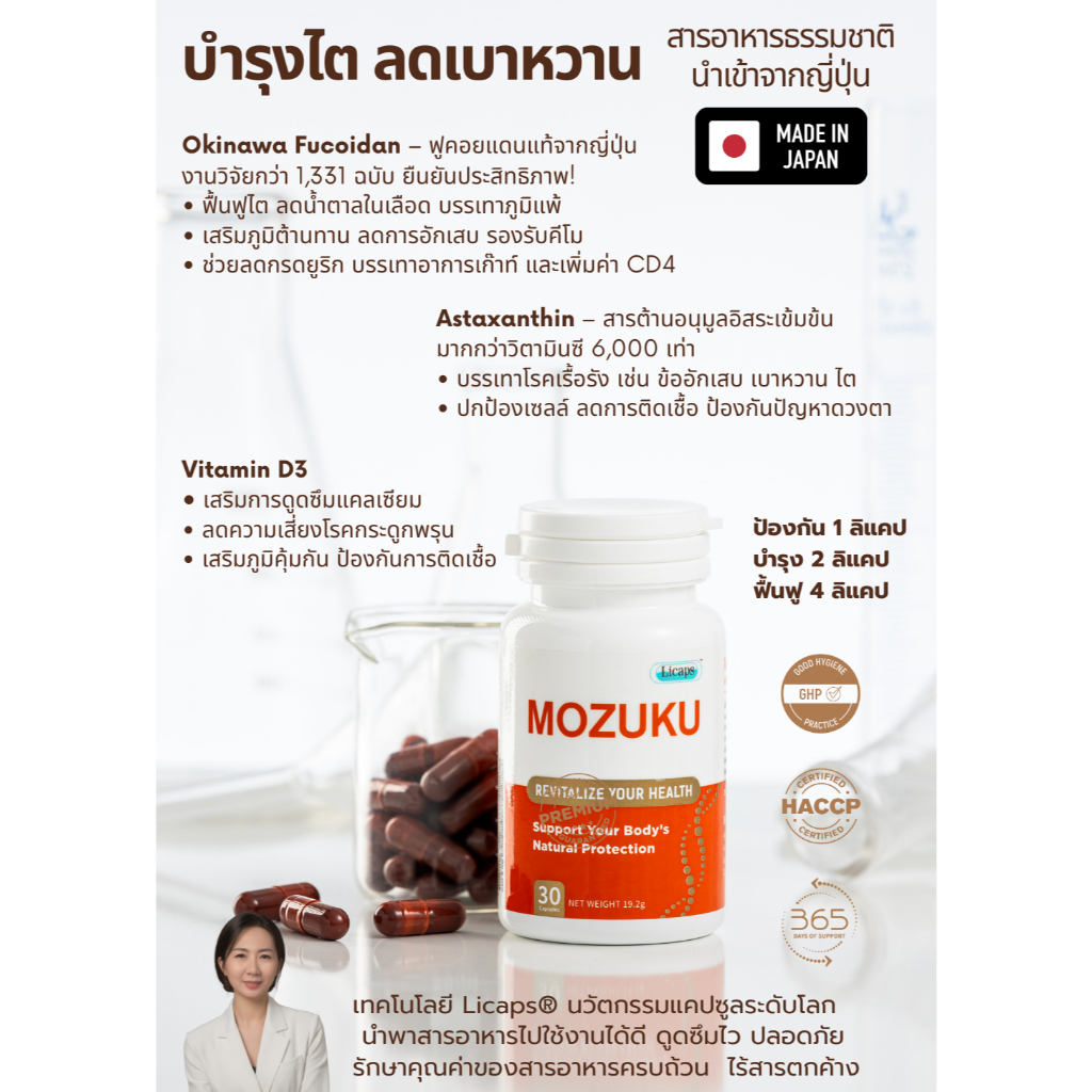 MOZUKU โมซุกุ ฟูคอยแดน แอสต้าแซนธิน D3 อาหารเสริมดูแลไตเสื่อม เบาหวาน ลดน้ำตาล ฟื้นฟูไต จากญี่ปุ่น