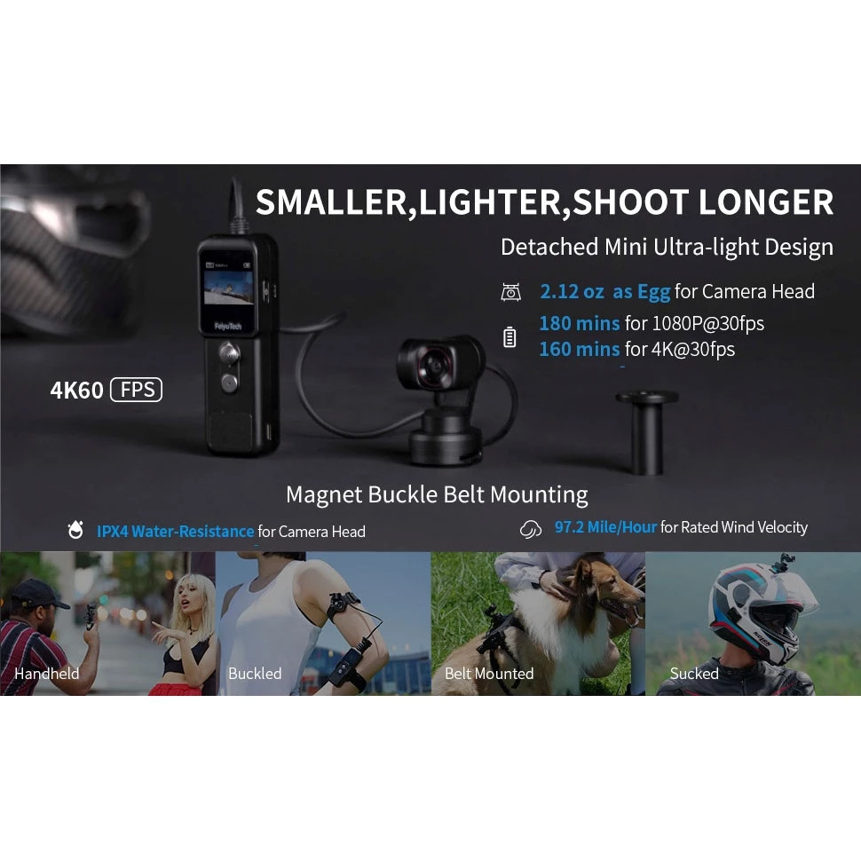 Feiyutech Pocket 2S กล้องกิมบอล 3 แกนแยกการออกแบบฐานแม่เหล็ก 1 / 2.5 นิ้วเซ็นเซอร์ 130 ° สนามมุมมอง Ultra HD 4K