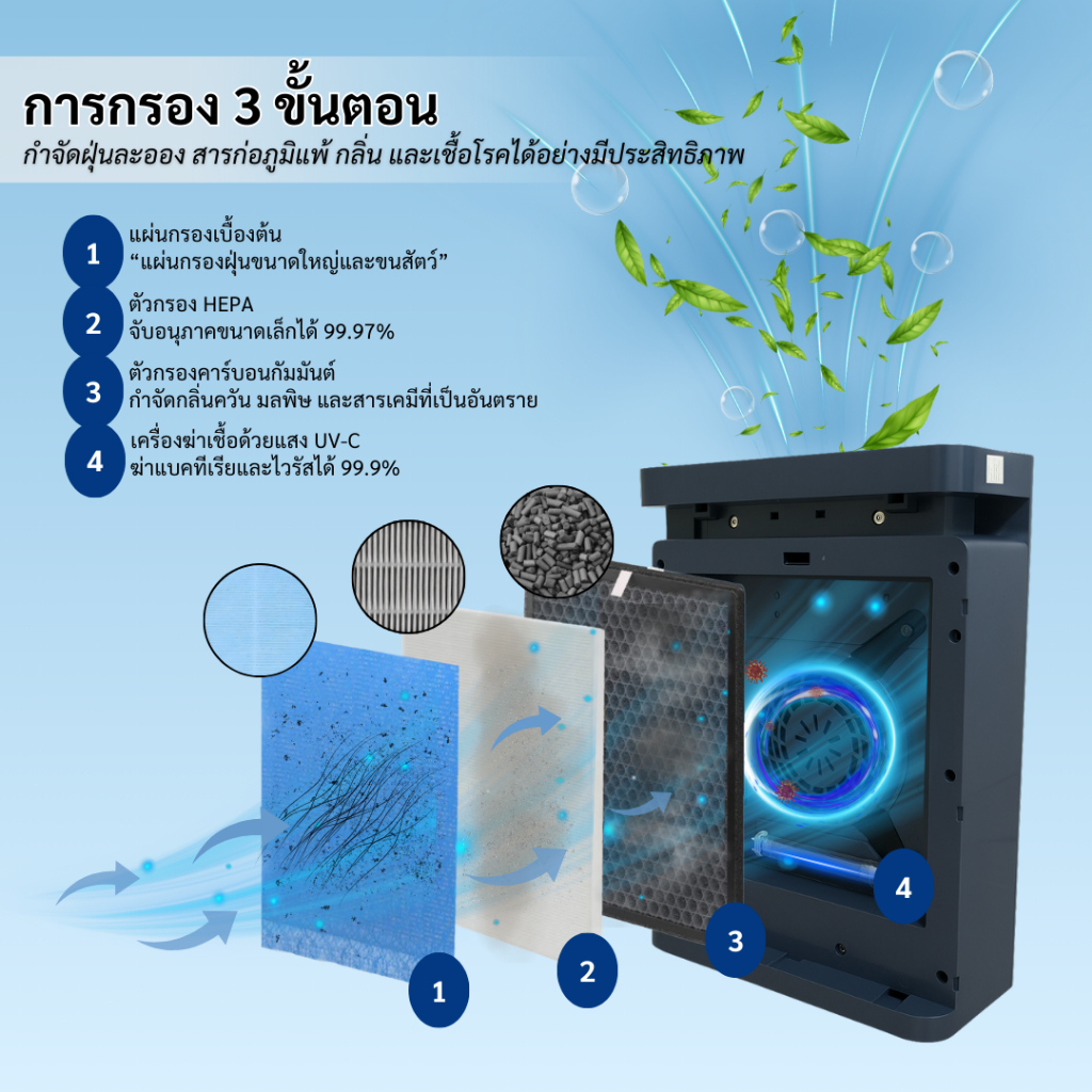 ONEHOME air purifier เครื่องฟอกอากาศ HEPA ไส้กรอง กำจัด ฟอร์มาลดีไฮด์ PM2.5 แบคทีเรีย TISI ลมแรงมาก