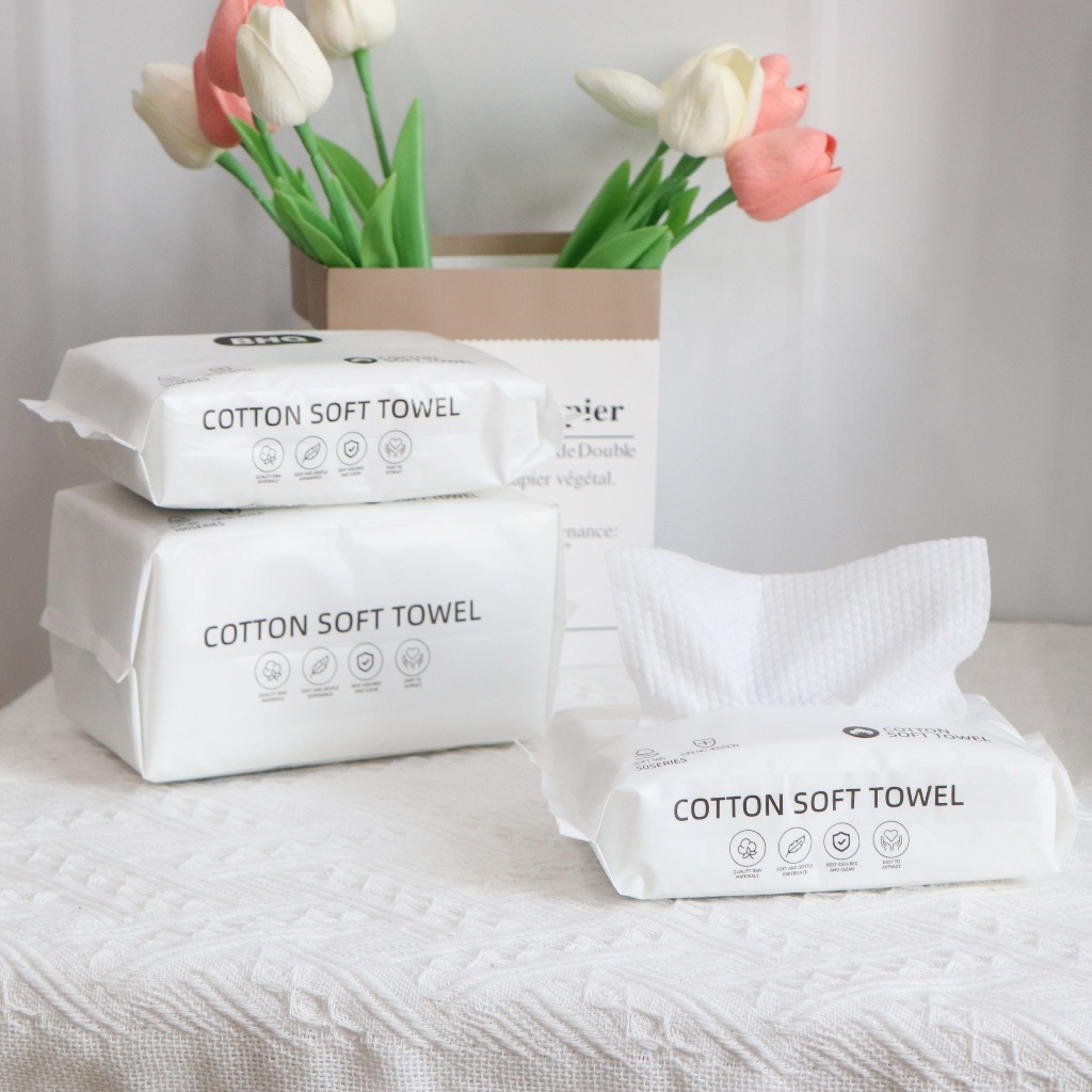 Allieuka ผ้าเช็ดหน้าแบบใช้แล้วทิ้ง 100 ชิ้น ทิชชู่เช็ดหน้า เช็ดเครื่องสำอางค์ ทำความสะอาด กระดาษทิชชู่