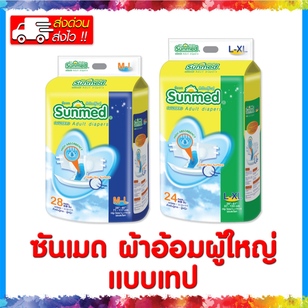📌พร้อมส่ง📌 Sunmed Adult diapers ซันเมด ผ้าอ้อมผู้ใหญ่ แบบเทป 🔹M-L (28 ชิ้น) 🔹L-XL (24 ชิ้น)