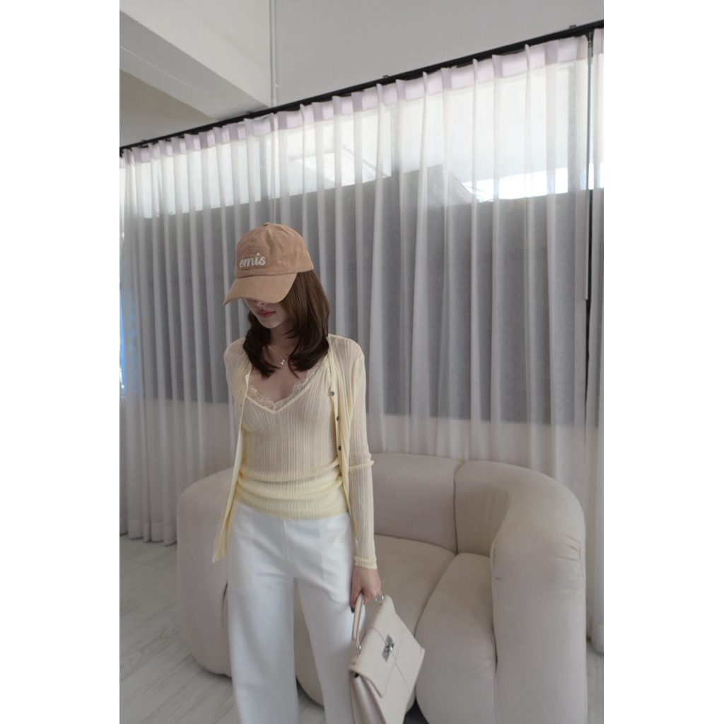 GAVANA — Lace Knit Set — เสื้อสายเดี่ยวไหมพรมแต่งลูกไม้ — #T26017