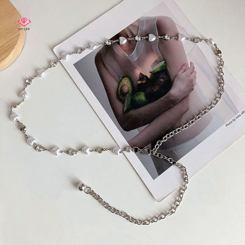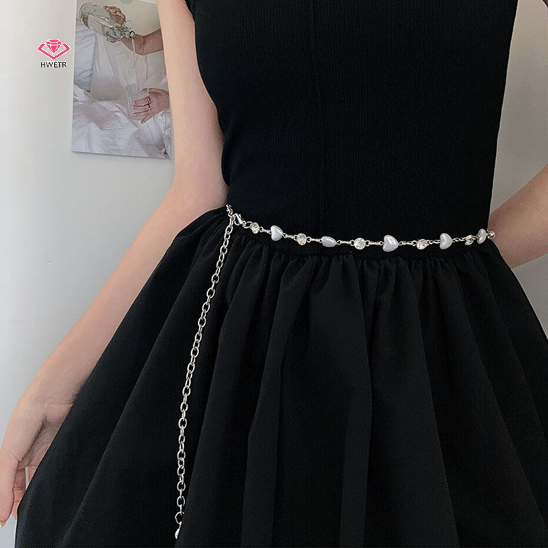 ยังไงก็ตาม แฟชั่นผู้หญิงที่สง่างามมุกเข็มขัดเอวหญิงสาวแต่งตัวหัวใจมุกเอวโซ่ตกแต่งเข็มขัดอุปกรณ์จัดงานแต่งงานใหม่